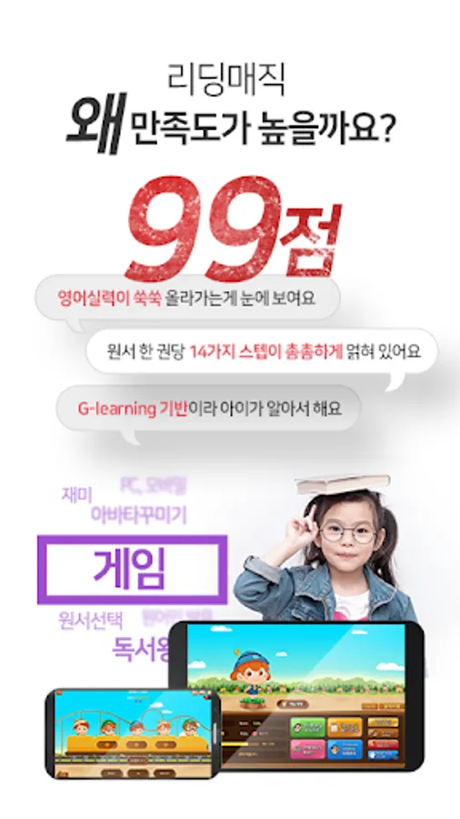 There are many similar reading programs, but Reading Magic is the only English reading program that focuses on speaking along with reading. In addition, it is an elementary learning program with high satisfaction with a membership extension rate of 88%.