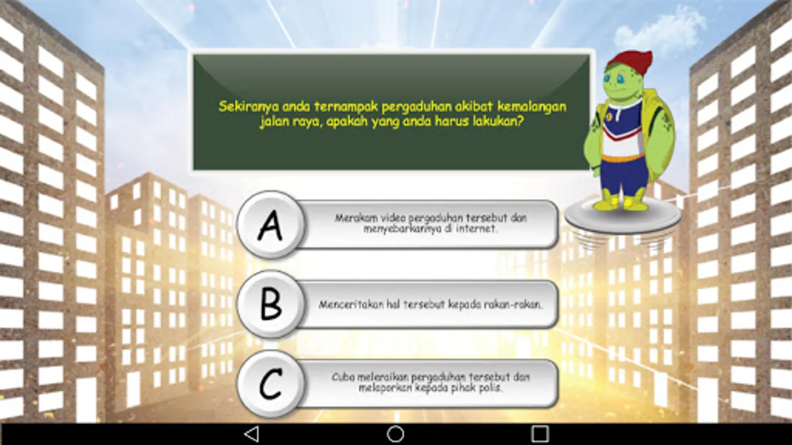 Generasi Celik Media is an ideal learning application game suitable for all generations. It can improve the player's knowledge of Internet & Social Media Security. This game has two levels, which each level has five episodes with different story. In order to complete the story, players are required to answer questions related to the Internet Safety. What are you waiting for? Let's try this game and see your level of knowledge about Internet Security.