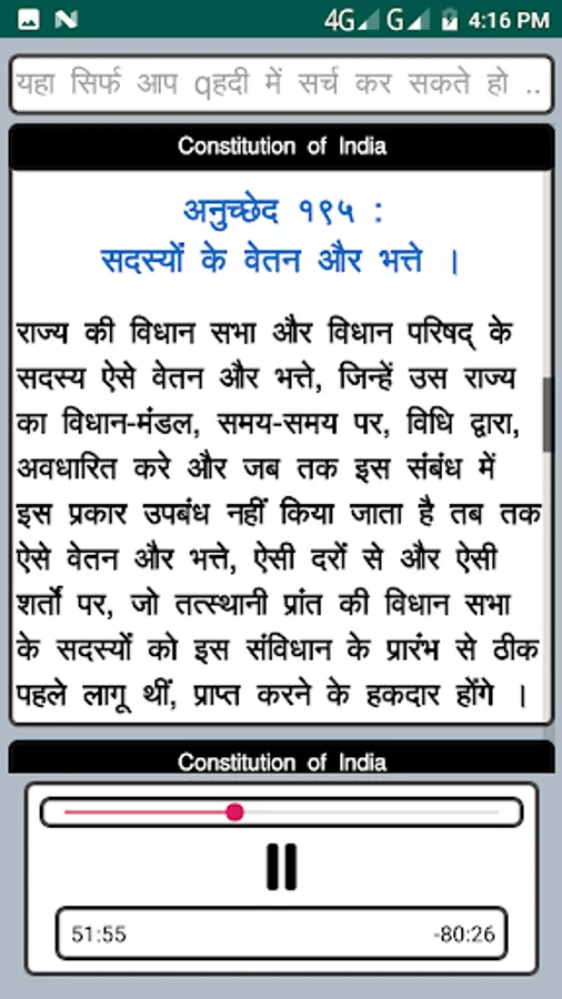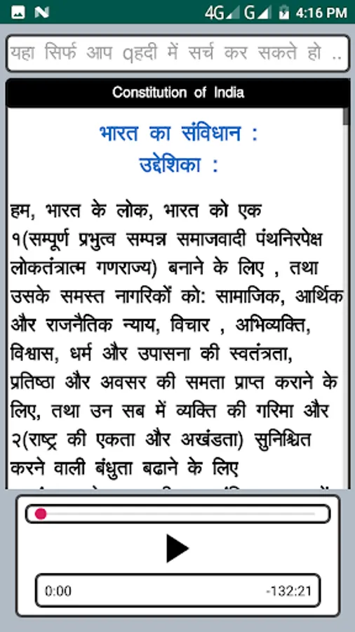 In This app Preamble, Parts, and Articles added in Hindi and English also. student can read in Hindi and English and audio in English only.