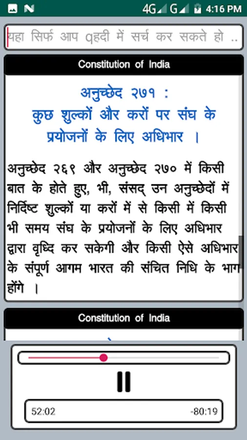 Now In this app total 5 part of Indian Constitution and total 122 article with audio and Text.