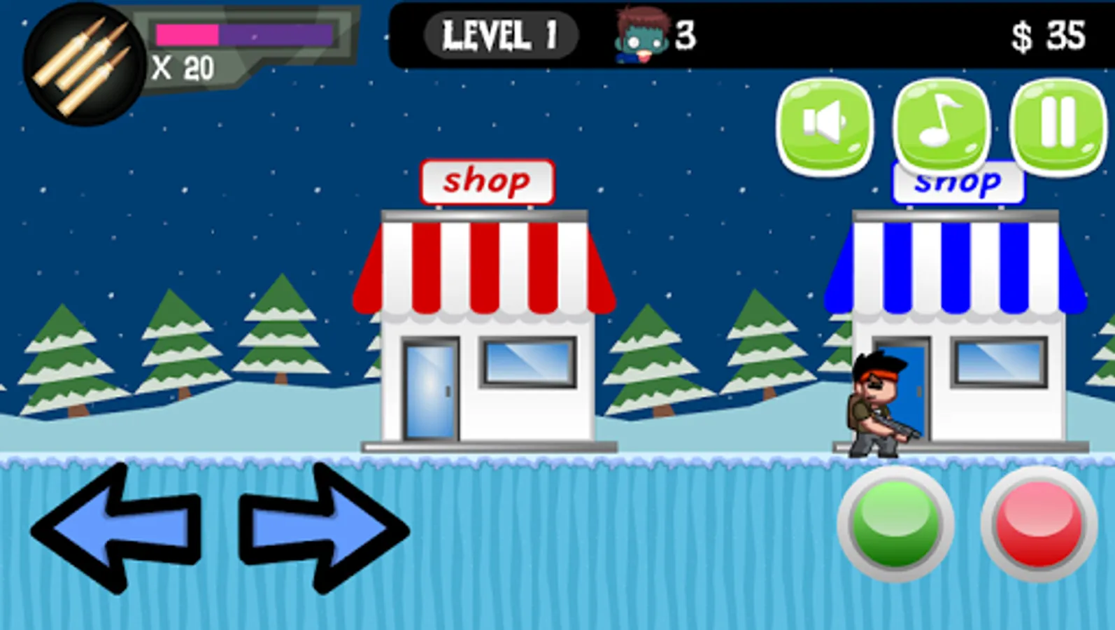 - After finishing each level, you can visit the shop and buy ammo, health etc