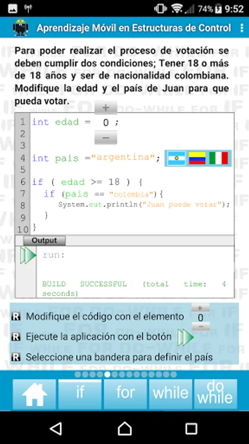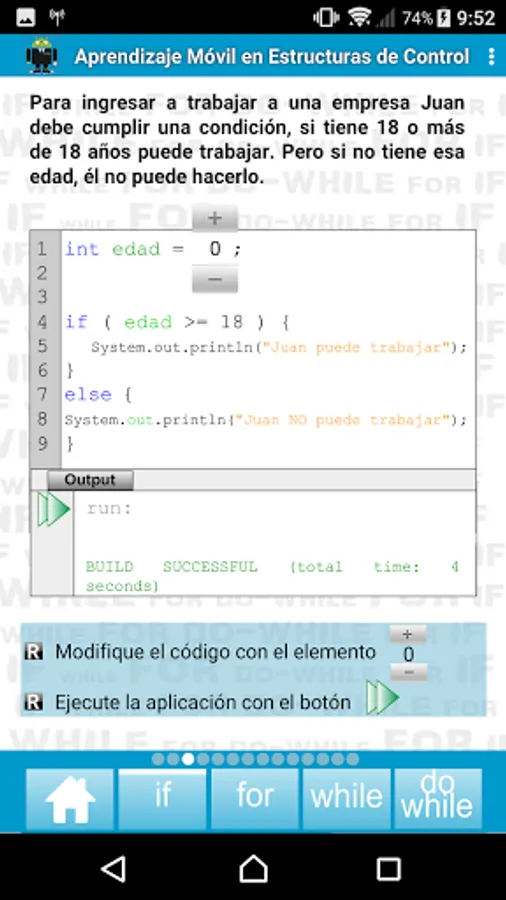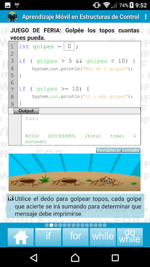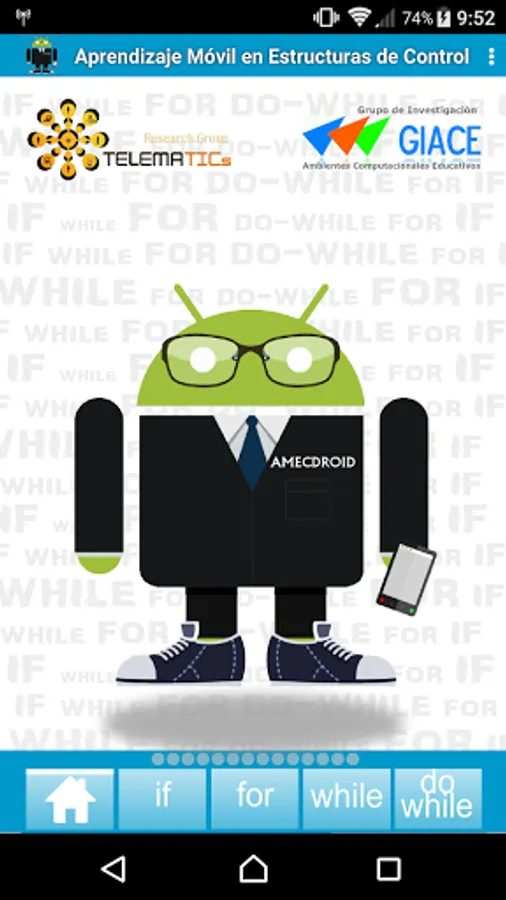 Amecdroid is a mobile educational application that allows the user to learn to use the control structures in programming correctly, it is made up of practical exercises, simulators and games.