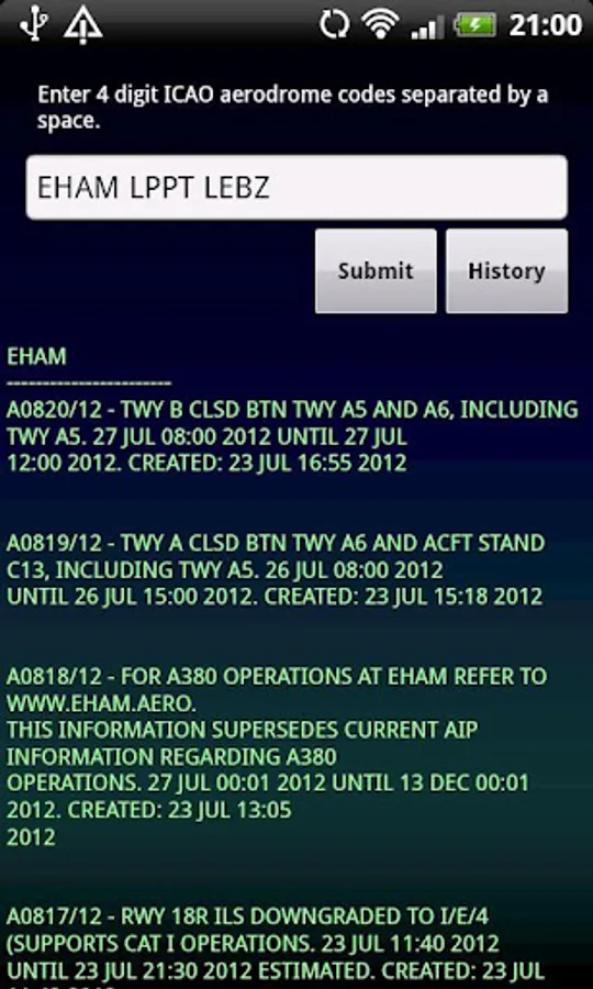 - Get latest METAR/TAF and NOTAMS using ICAO codes