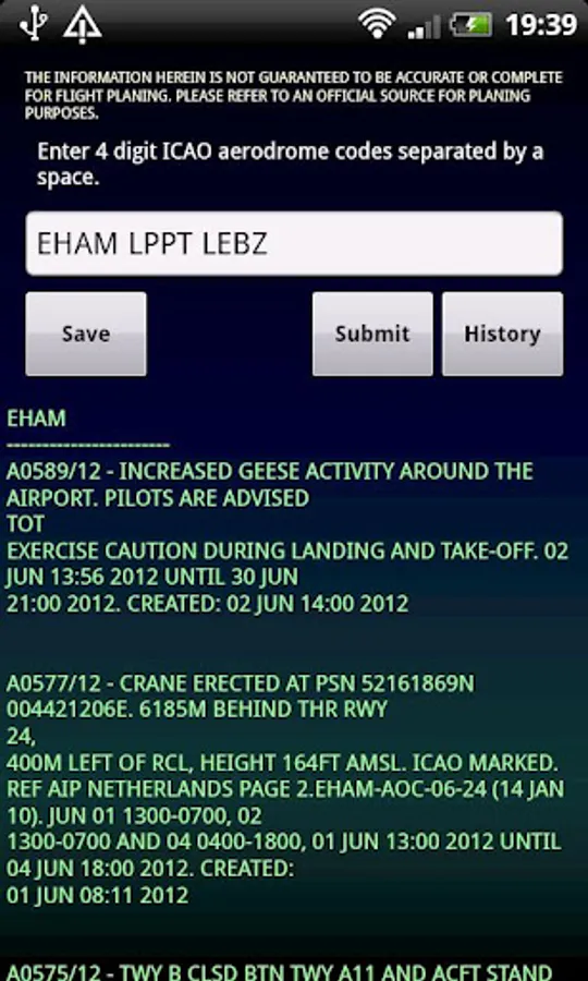 - Get latest METAR/TAF and NOTAMS using ICAO codes