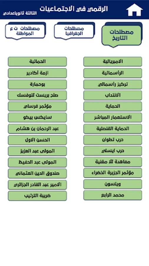 Finally, the application also provides a set of interactive exercises in the form of applications in drawing the time line through examples from the course in addition to educational videos in the subject of geography.