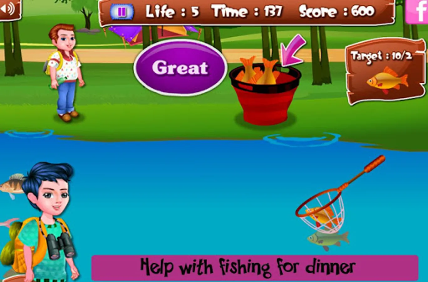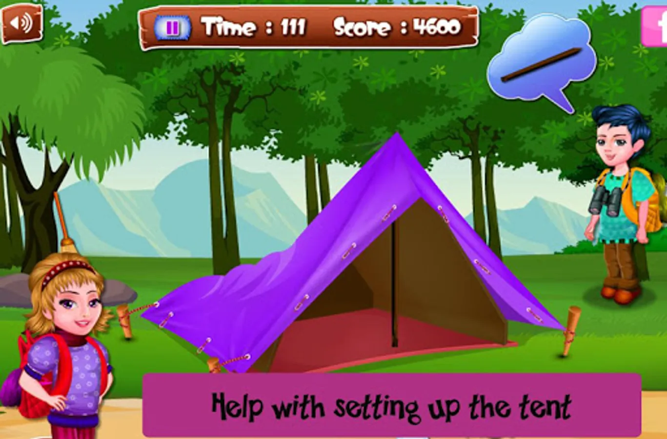 The campers needs to pack their camping stuff first! Help with shopping camping stuff like a tent and pack everything for a crazy holiday!