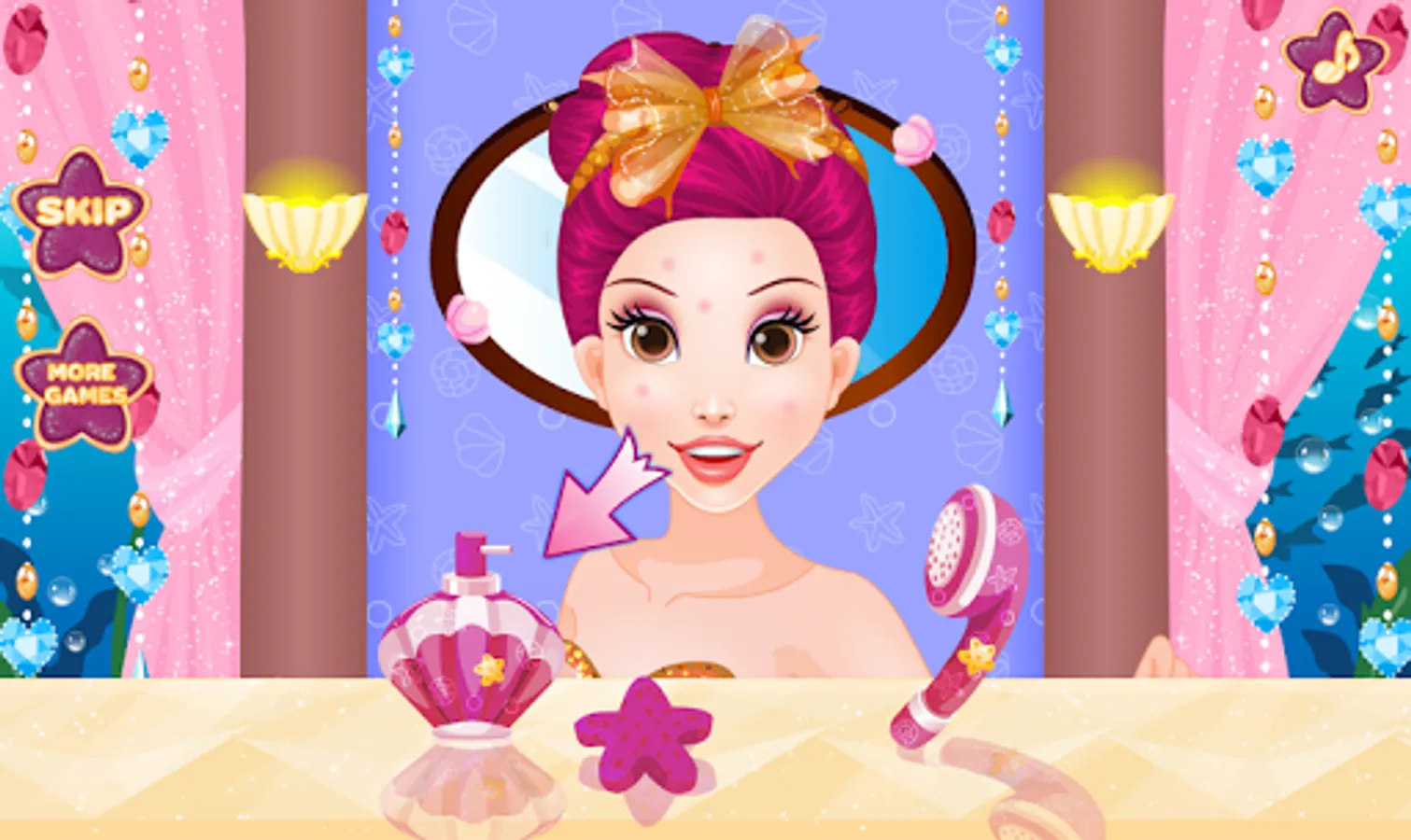 - Spa to relax and clean her skin for mermaid spa salon games