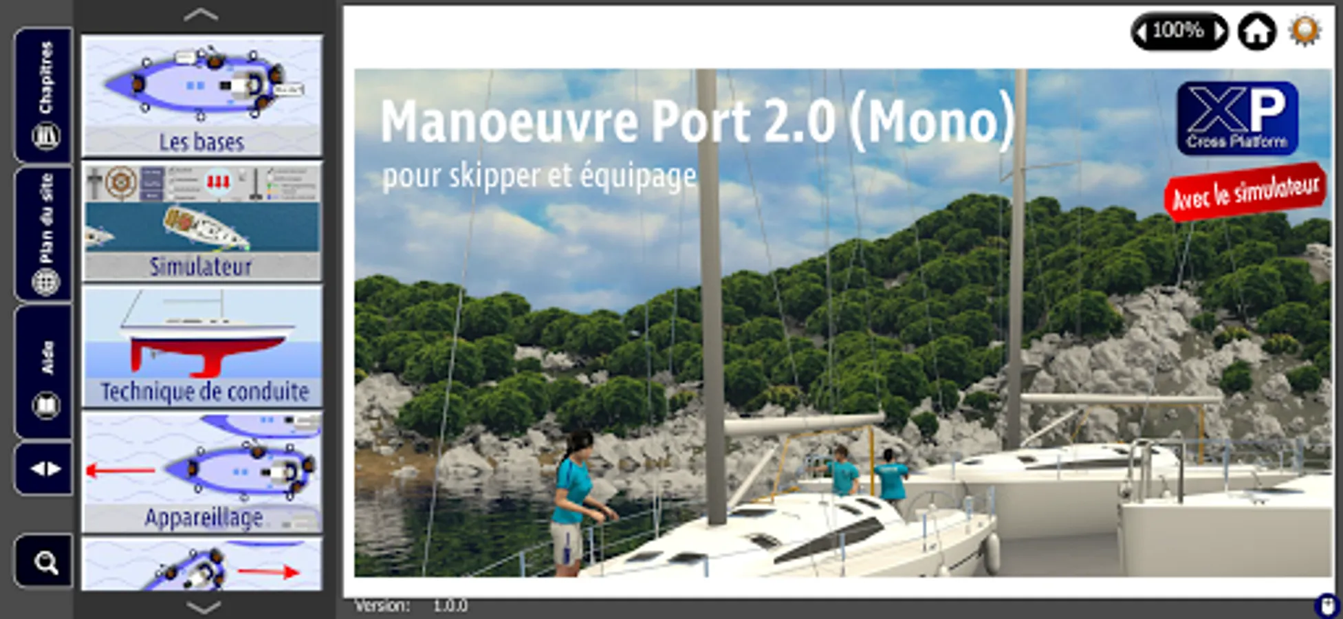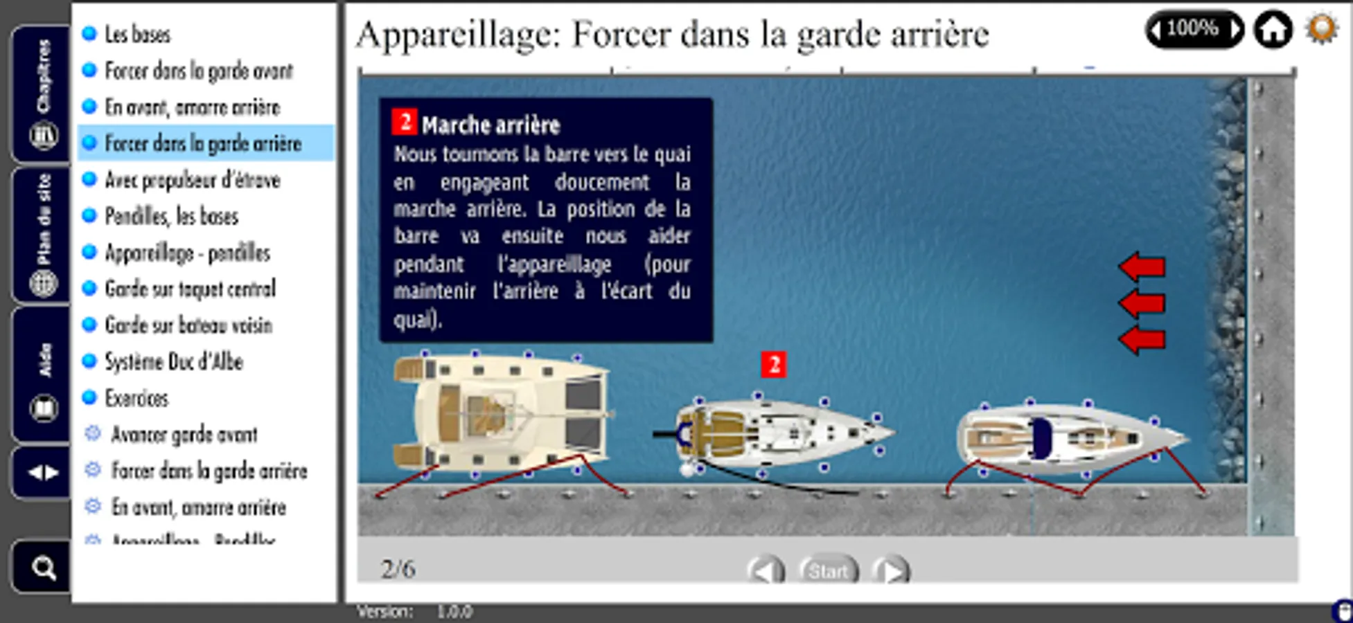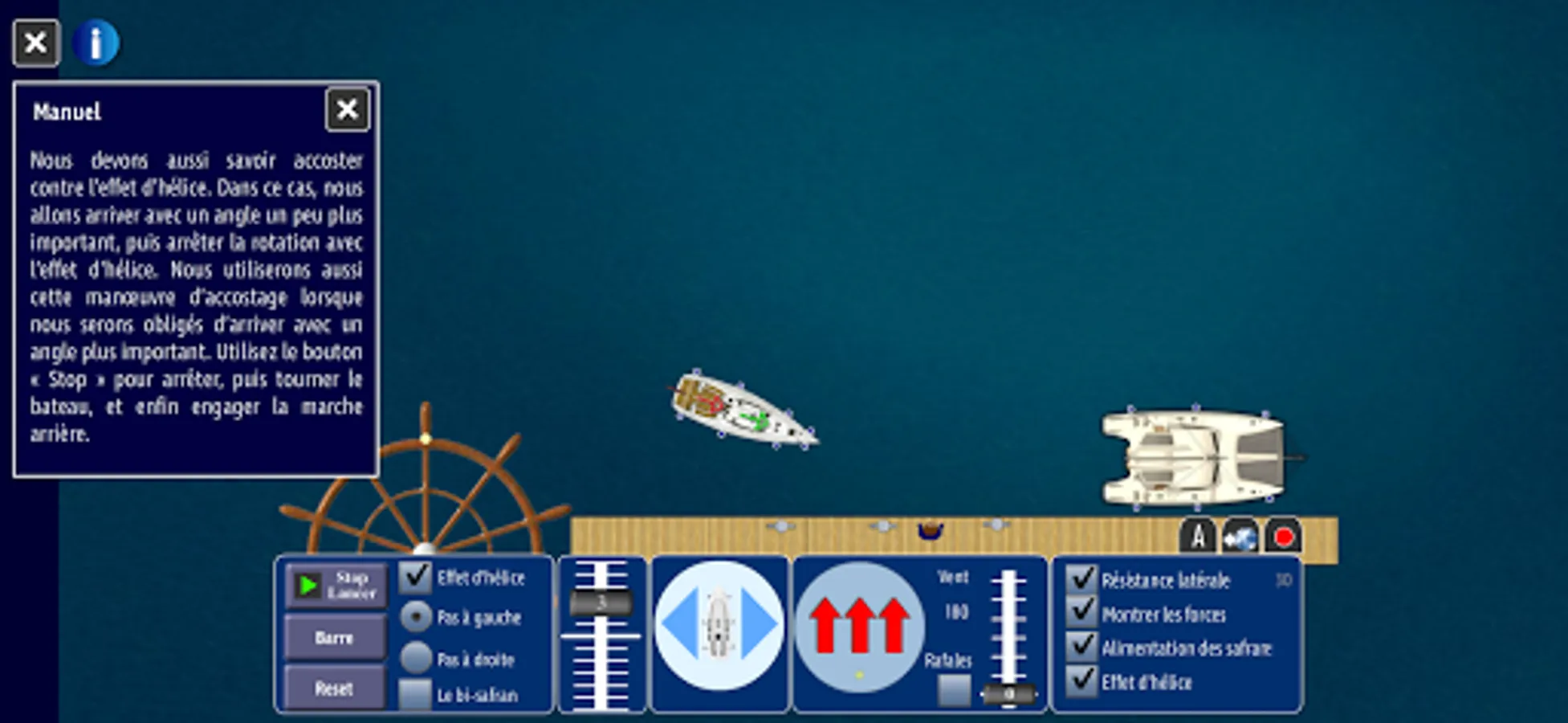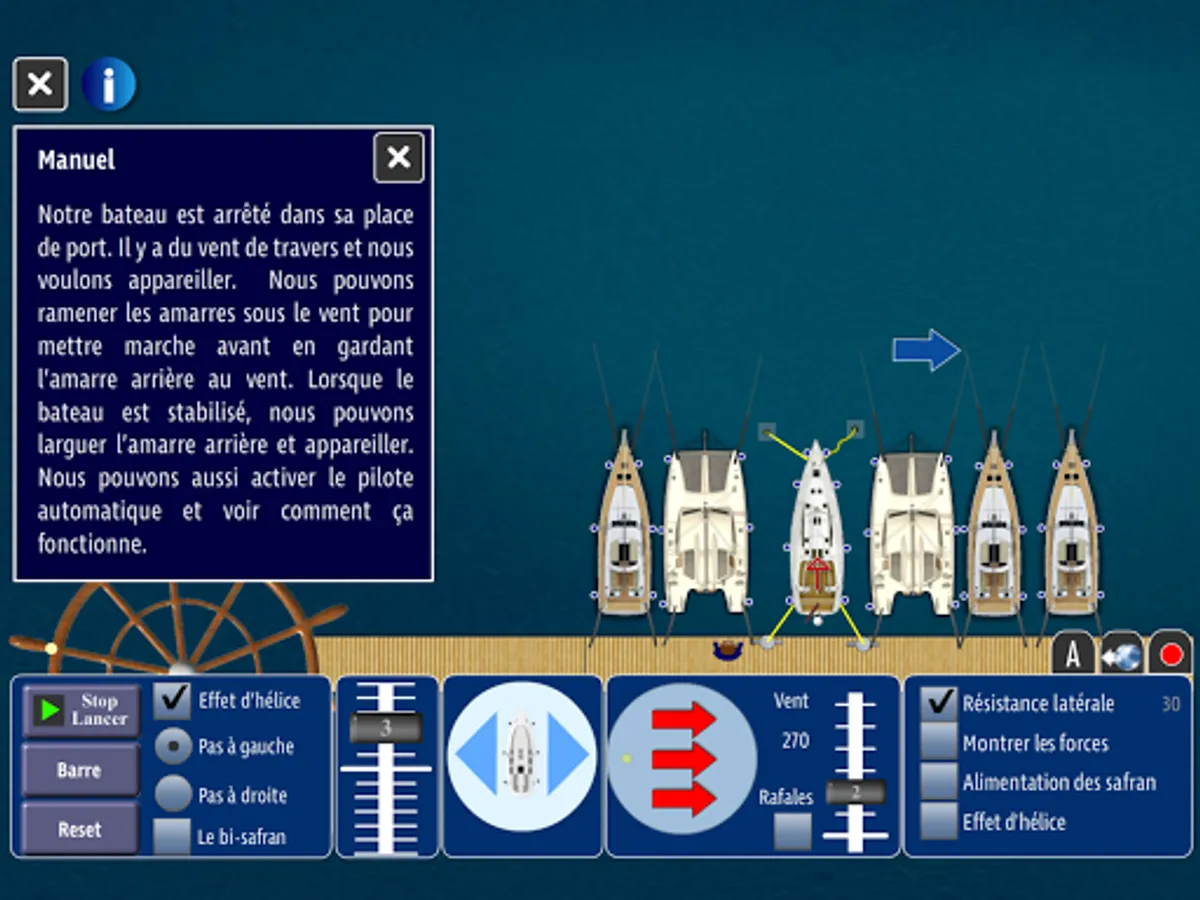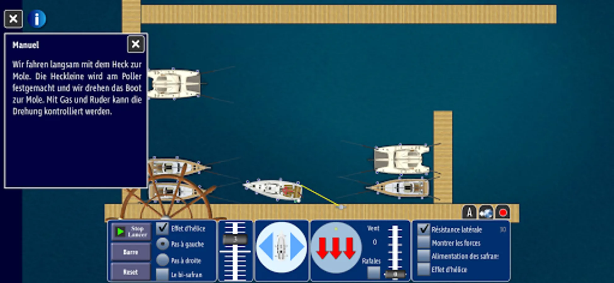 This maneuver, as well as all the important maneuvers, can be found in this application which is a professional harbor maneuver training program for skippers of monohull sailboats.