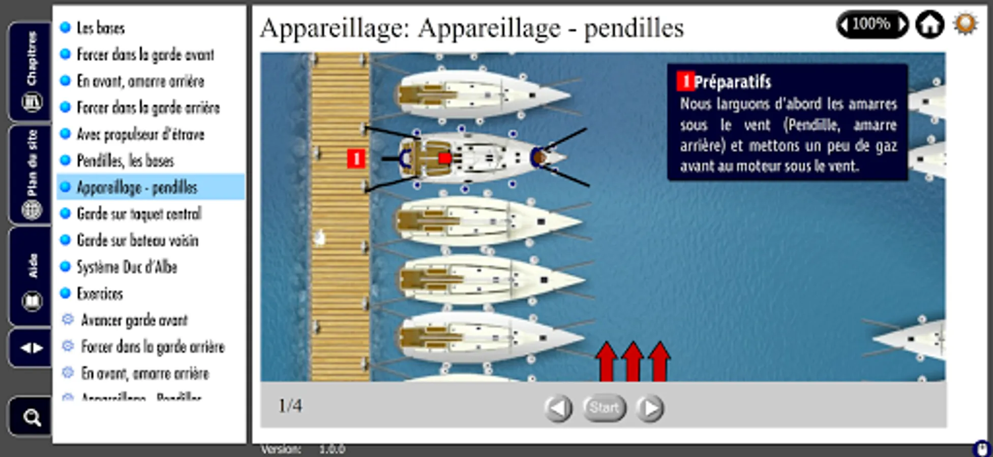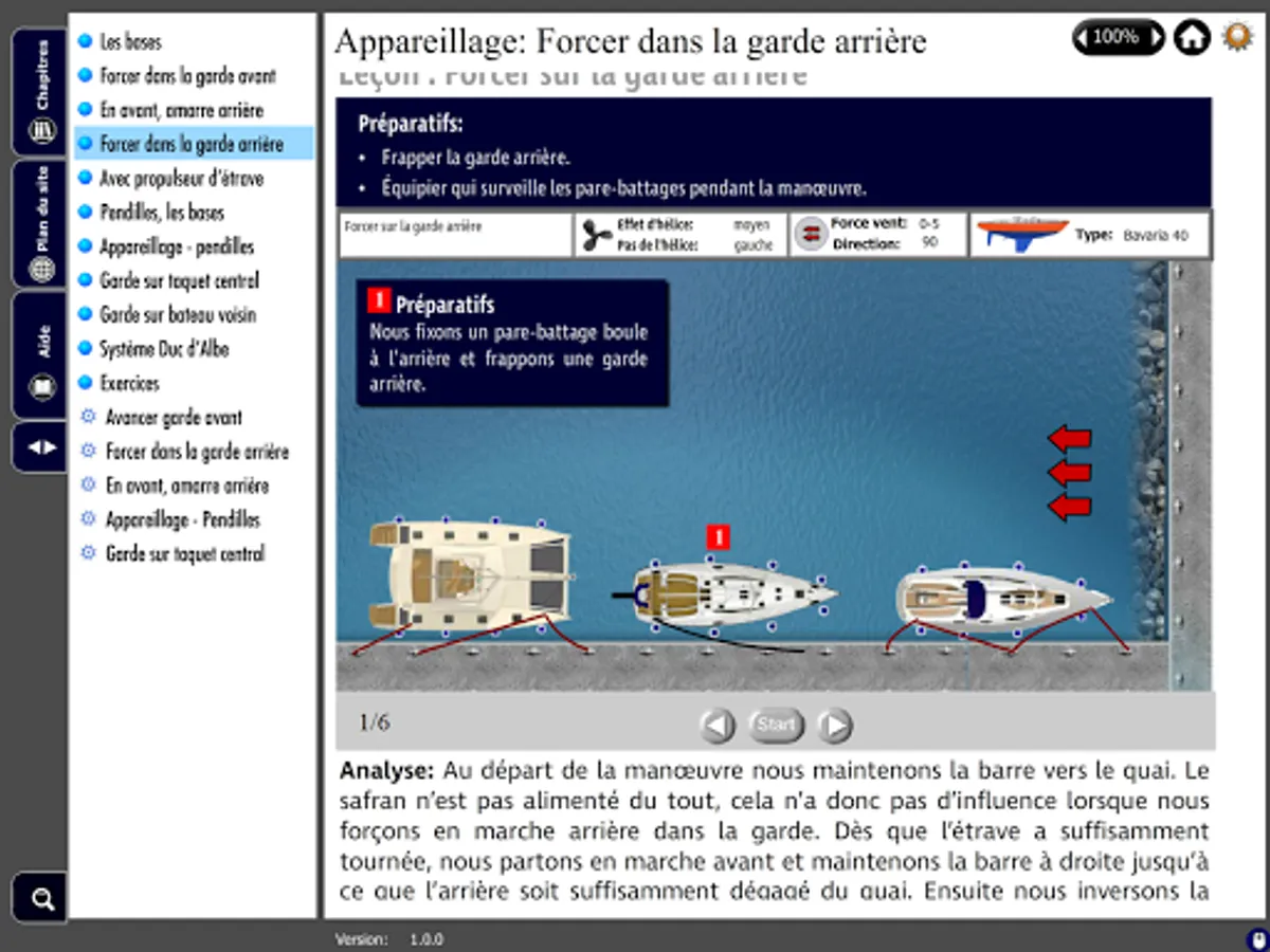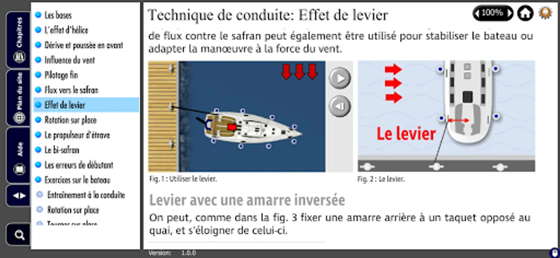 All the maneuvers are described and can be performed as an interactive movie, step by step. Thus, for example, the different possibilities of a docking maneuver are described and clarified.