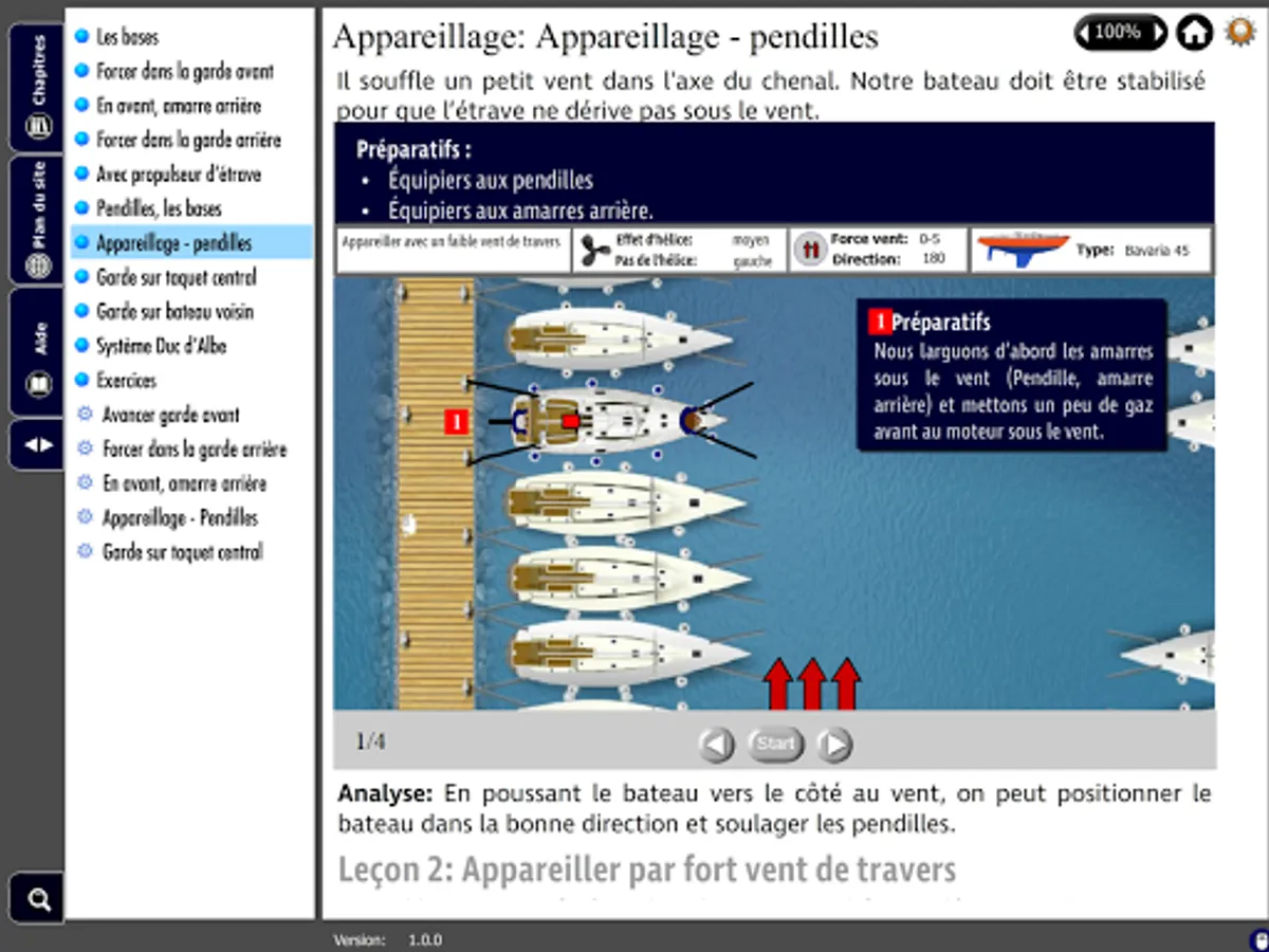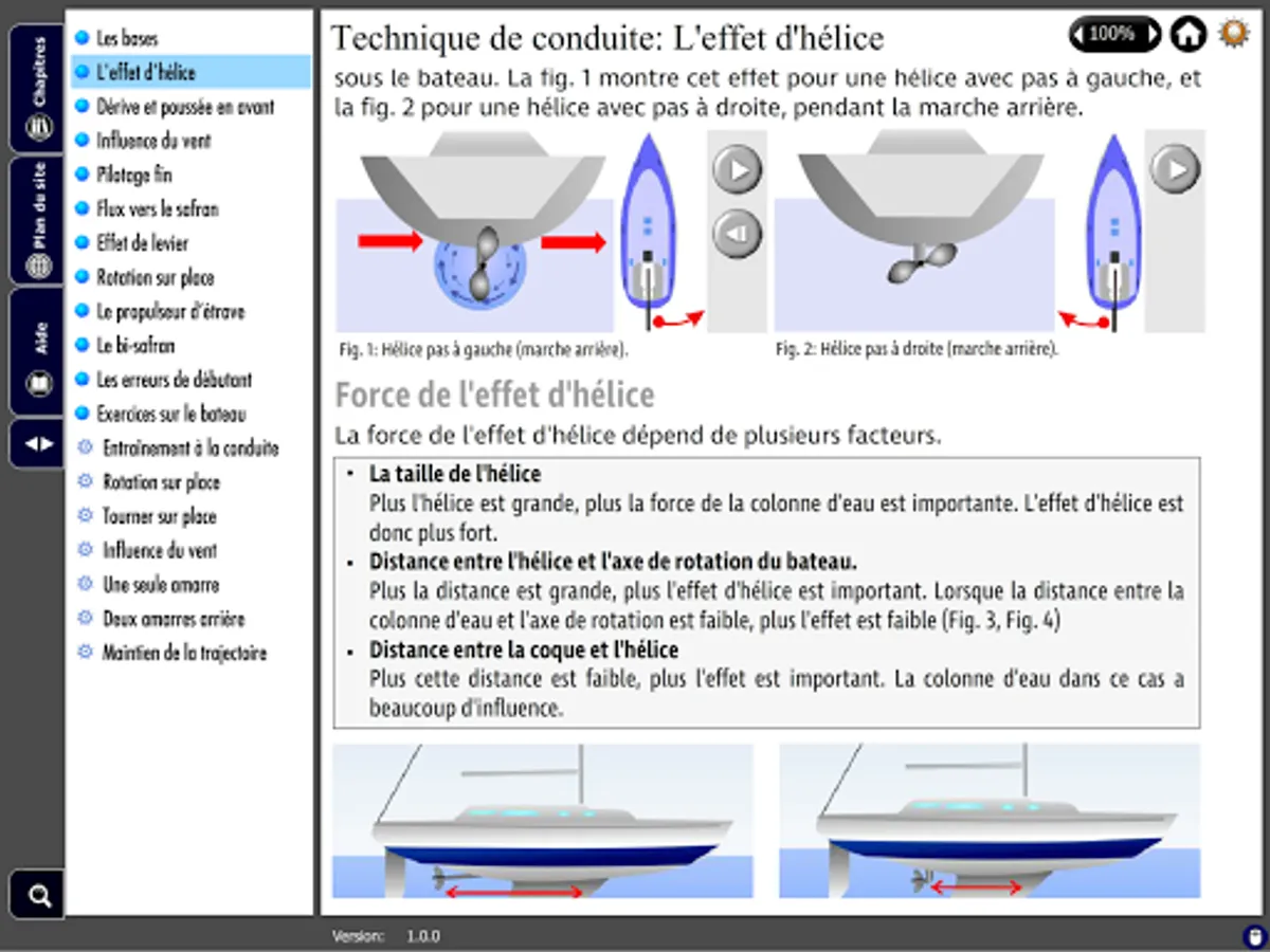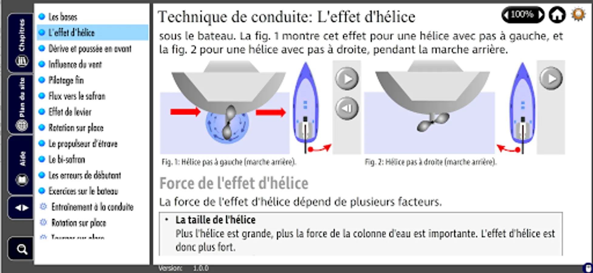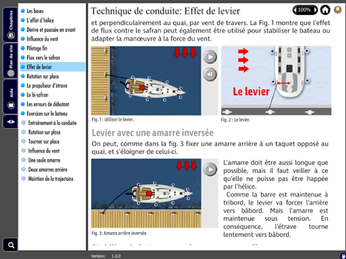 All the maneuvers are described and can be performed as an interactive movie, step by step. Thus, for example, the different possibilities of a docking maneuver are described and clarified.