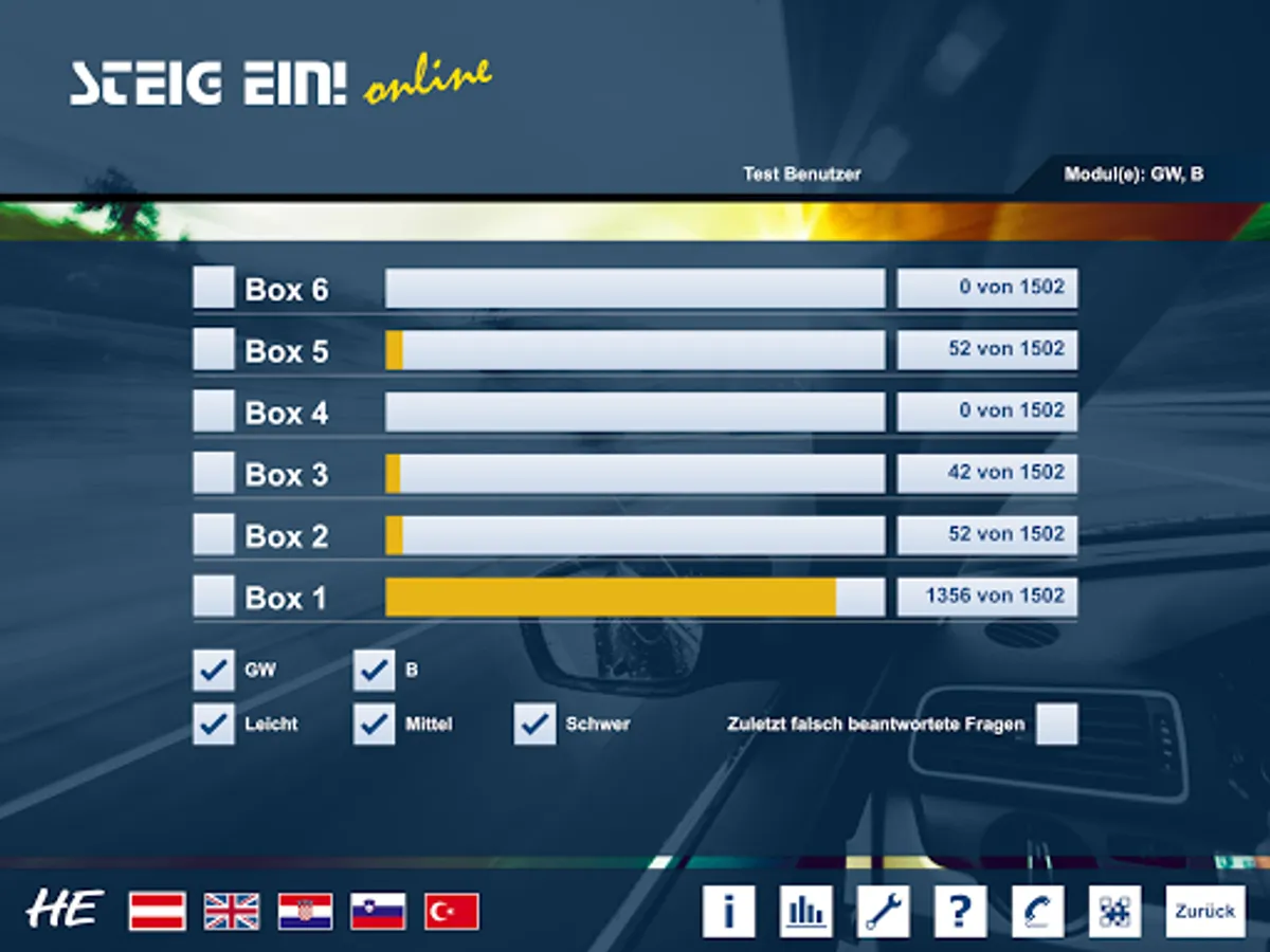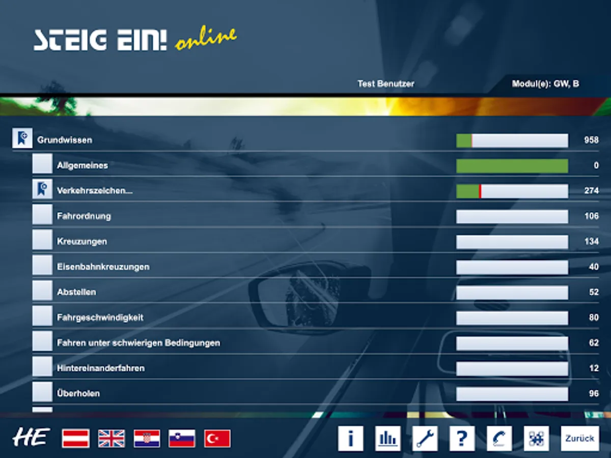 The new STEIG ON! Online App enables the use of the innovative internet-based learning system STEIG EIN! Online on mobile devices with Android or iOS operating systems and offers not only the already known from our offline products opportunities and benefits such as online update capability, interactive content, all official test languages and audio support in German. In addition to these options, the user also has the option "guided learning pathway" at his disposal. In this mode, you are virtually taken by the hand and led in 10 steps to the exam maturity. The test simulations are compiled according to the official mode, but also take into account previously incorrectly answered or difficult-marked questions. As a learning aid, a short help text, a detailed explanatory text, the corresponding textbook page and, if applicable, the instructional videos from the theory class are available for each question.