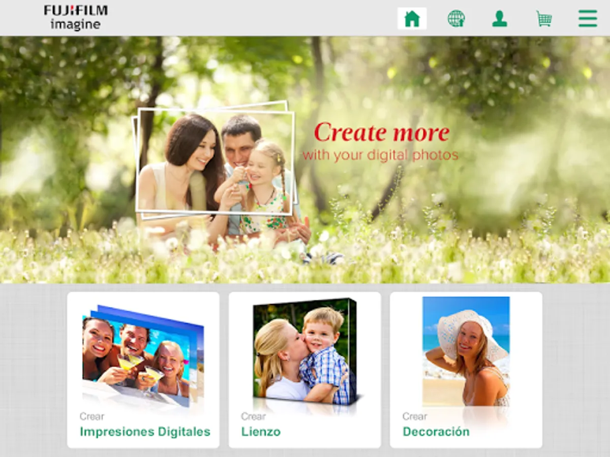 Fujifilm Imagine is a tool to print your photos in a wide range of materials with the best image quality. The application integrates naturally with your online account so you can continue with your projects from your computer.
