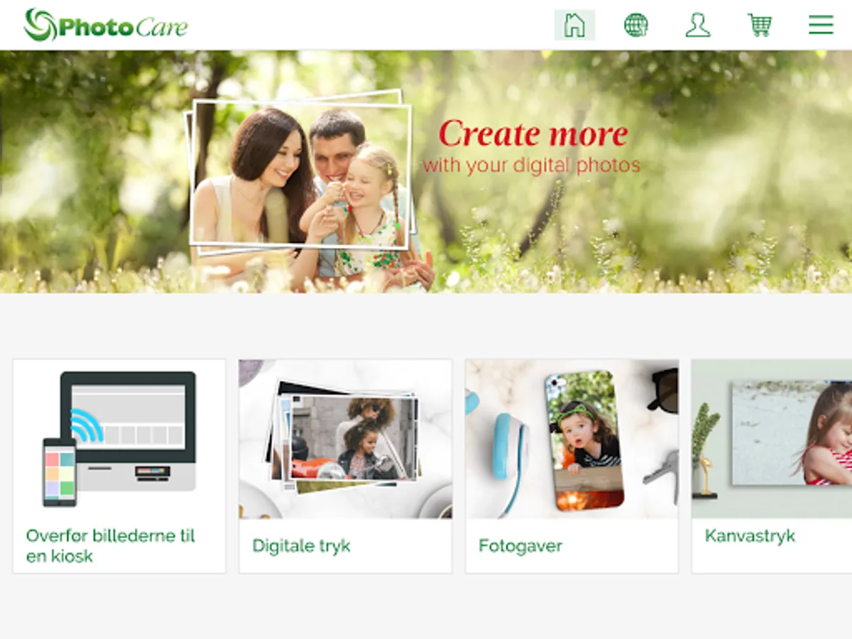 With PhotoCare you can make a lot of products out of the picture on your mobile phone. It also integrates with your online account at PhotoCare.dk so you can also use pictures from this account