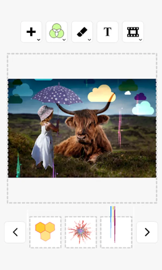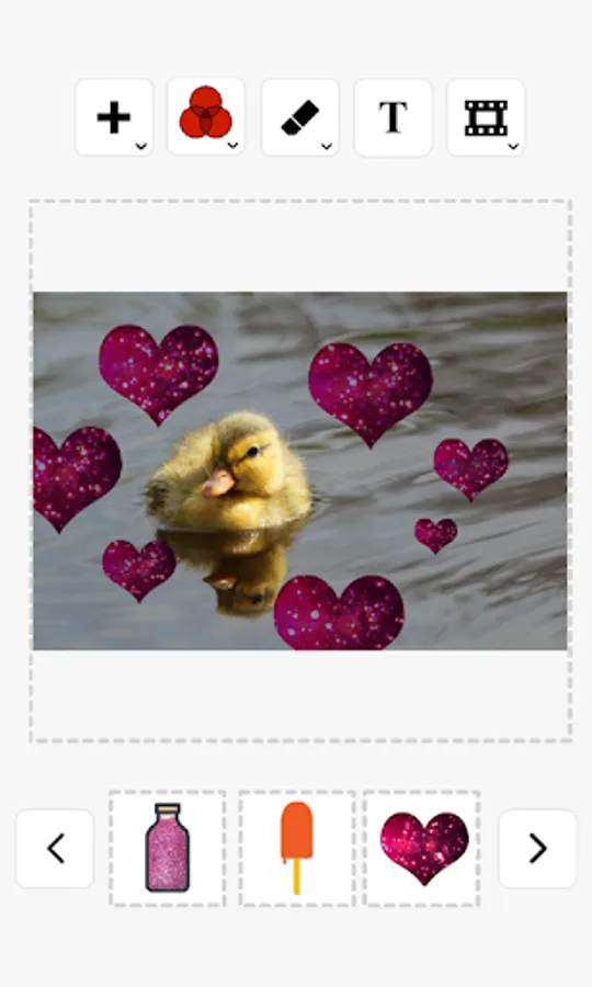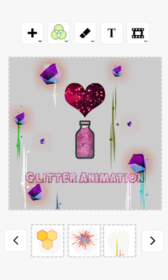 Spray glitter and sparkle animation to your photos and save the result as mp4 video or animated gif.