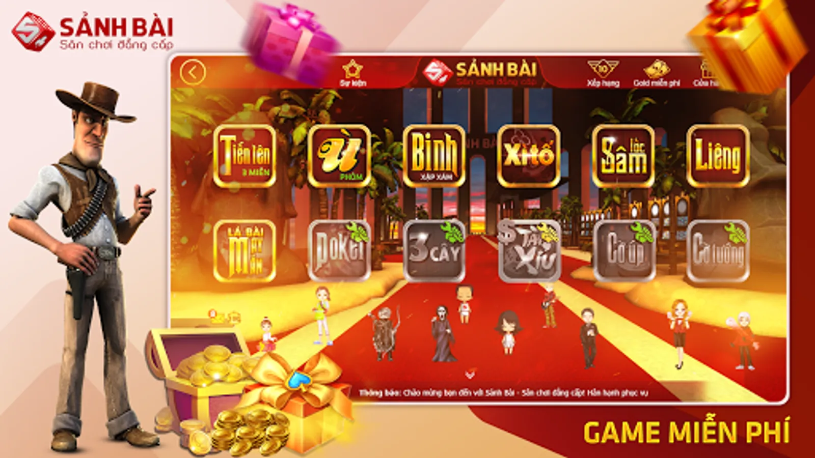 Join the Lobby community, you will receive free gold to play daily and many other attractive gifts.