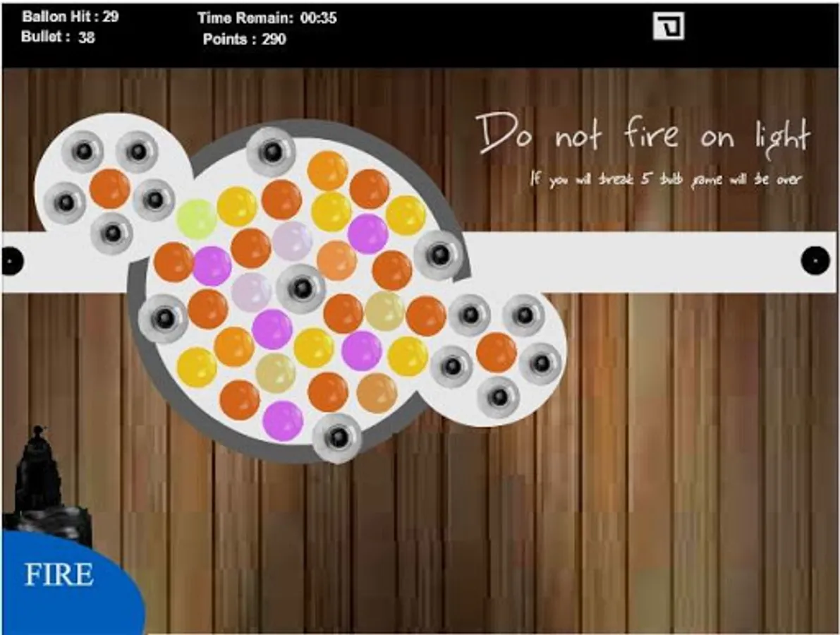 Balloon carnival is an arcade and action pop free game where you can take the fun of a carnival.Kids can also play.It can be accepted as bubble or balloon shooter game.After completion of each level new levels will introduced with different type of structure and look and feel.All level are different in that balloon hit game.You have to complete the all levels in time otherwise that balloon hit game will be over.At time time of playing you can change movement of the gun.For now in balloon hit there is only two type of movement one is tilt and another is touch.