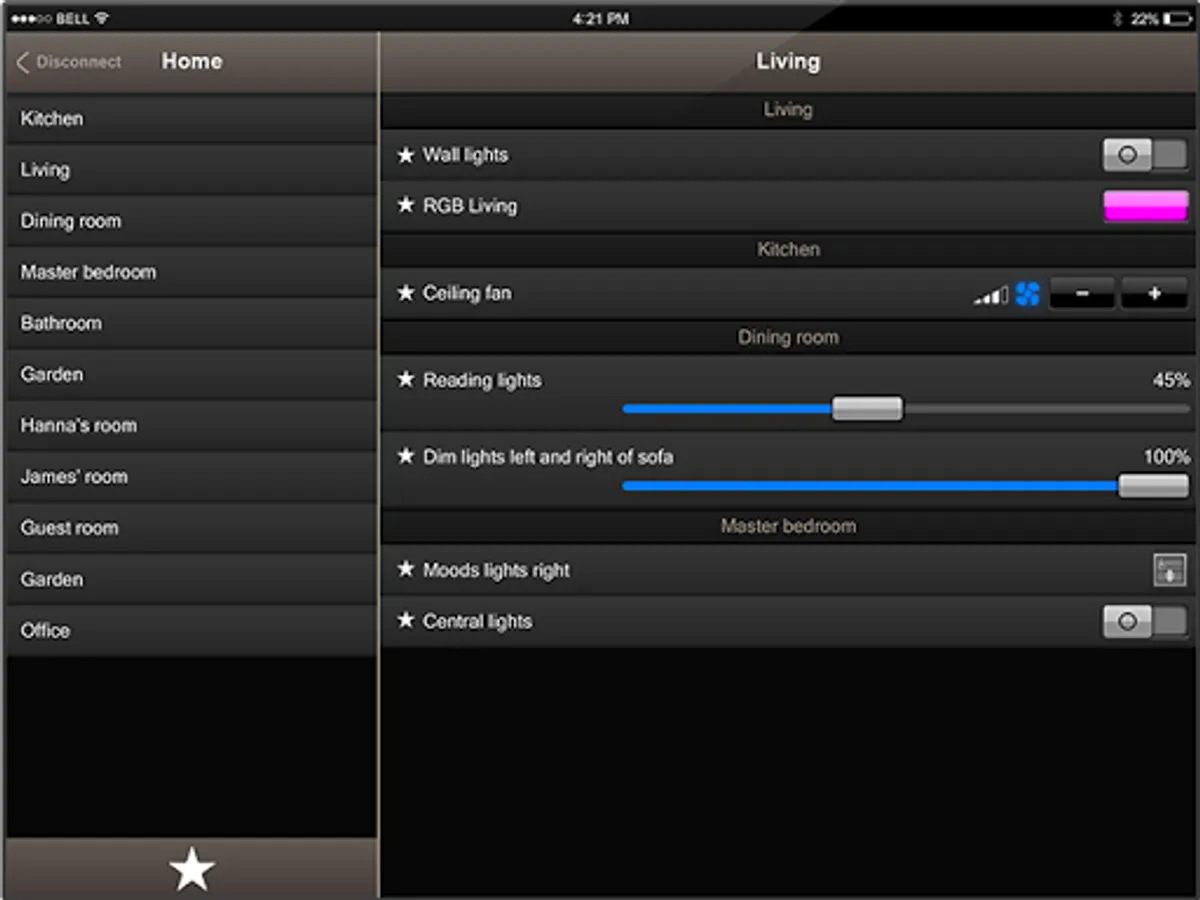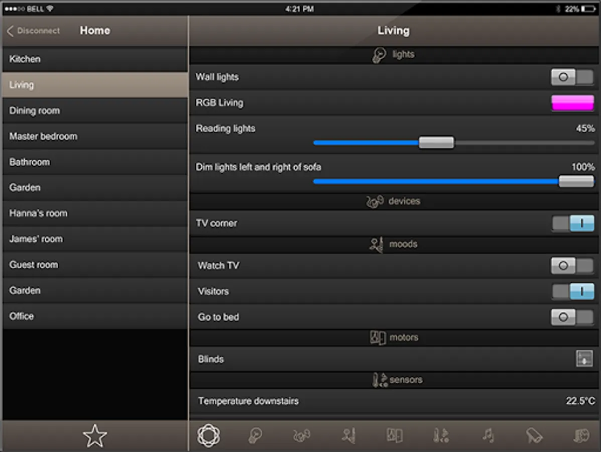 The iSGUI app from TELETASK offers you a detailed and easy to use interface on which you can control and manage all home automation functions of your TELETASK equipped house.
