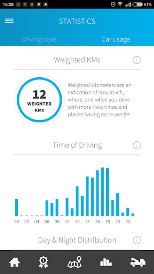 The app records your driving style and provides insight on how you drive. It provides access to Roadside assistance, list of available repair shops and much more.