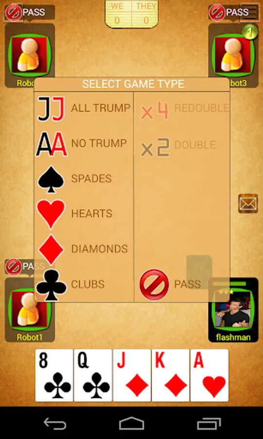 This is multiplayer version of the popular game Bridge-Belote (or just Belot).