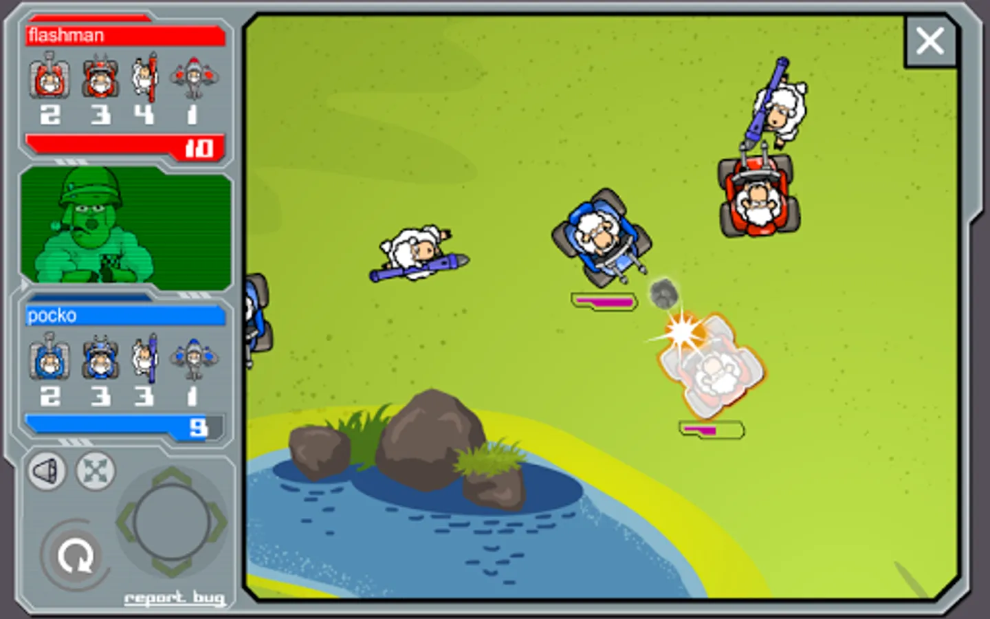 - Multiple units. The game has 4 types of units, each of them has different armor, speed, power and gun. Now’s your chance to see the damage a sheep with a bazooka can do.