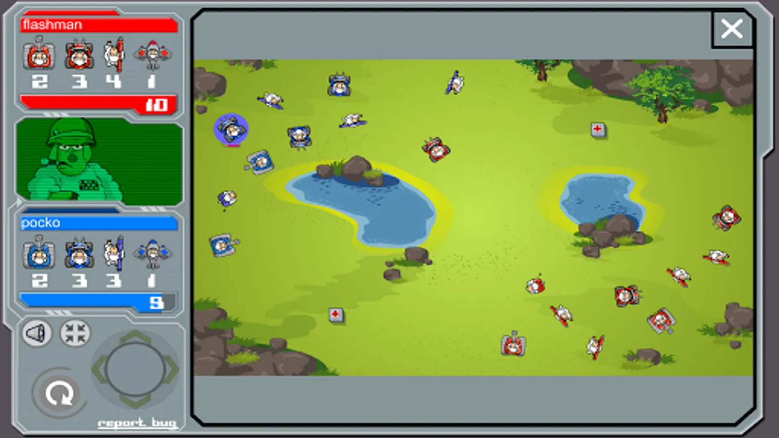 - Easy gameplay. When your turn comes just use the in-game joystick to move your unit close to the enemy and hit the fire button, before the counter hits 0. You can also pick-up health packs to recover a damaged unit.