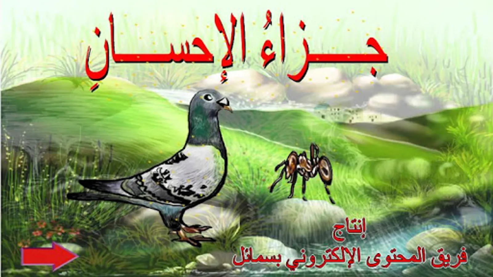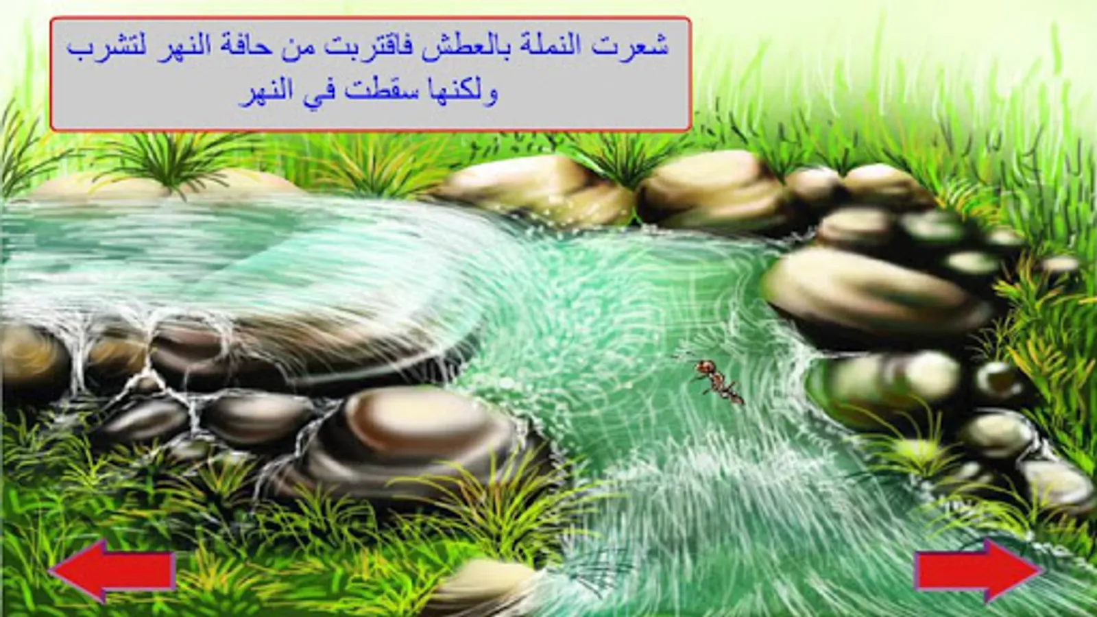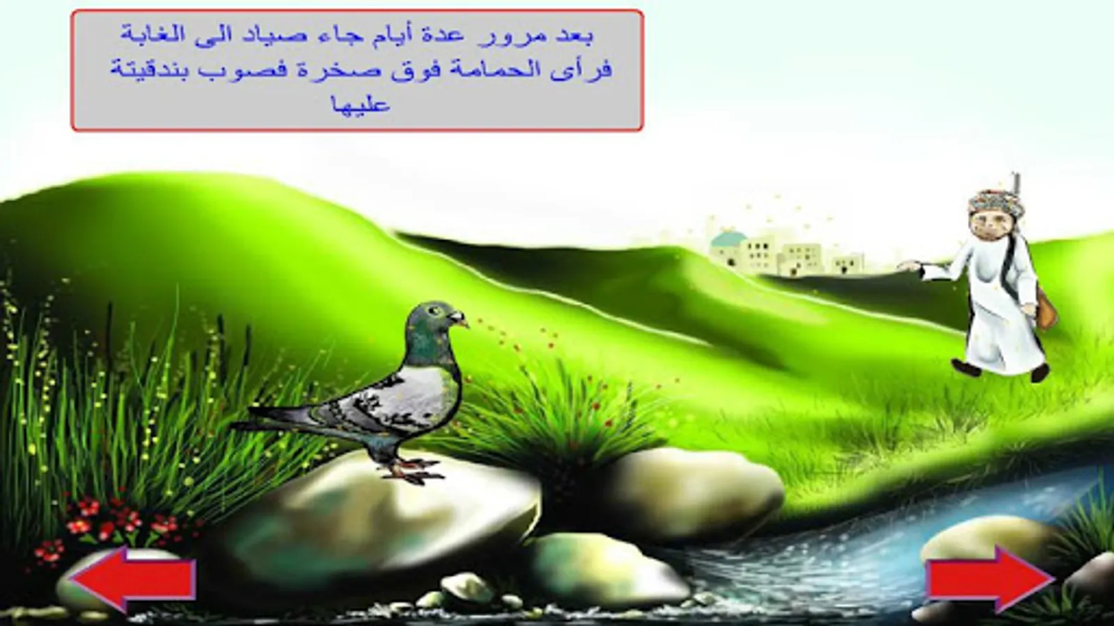 The story of the application is a famous story about a pigeon and an ant met in difficult circumstances as the dove saved the ant from drowning when the ant wanted to drink from the river and days later the ant returned the beautiful to the pigeon where it rescued from a hunter tried to hunt.