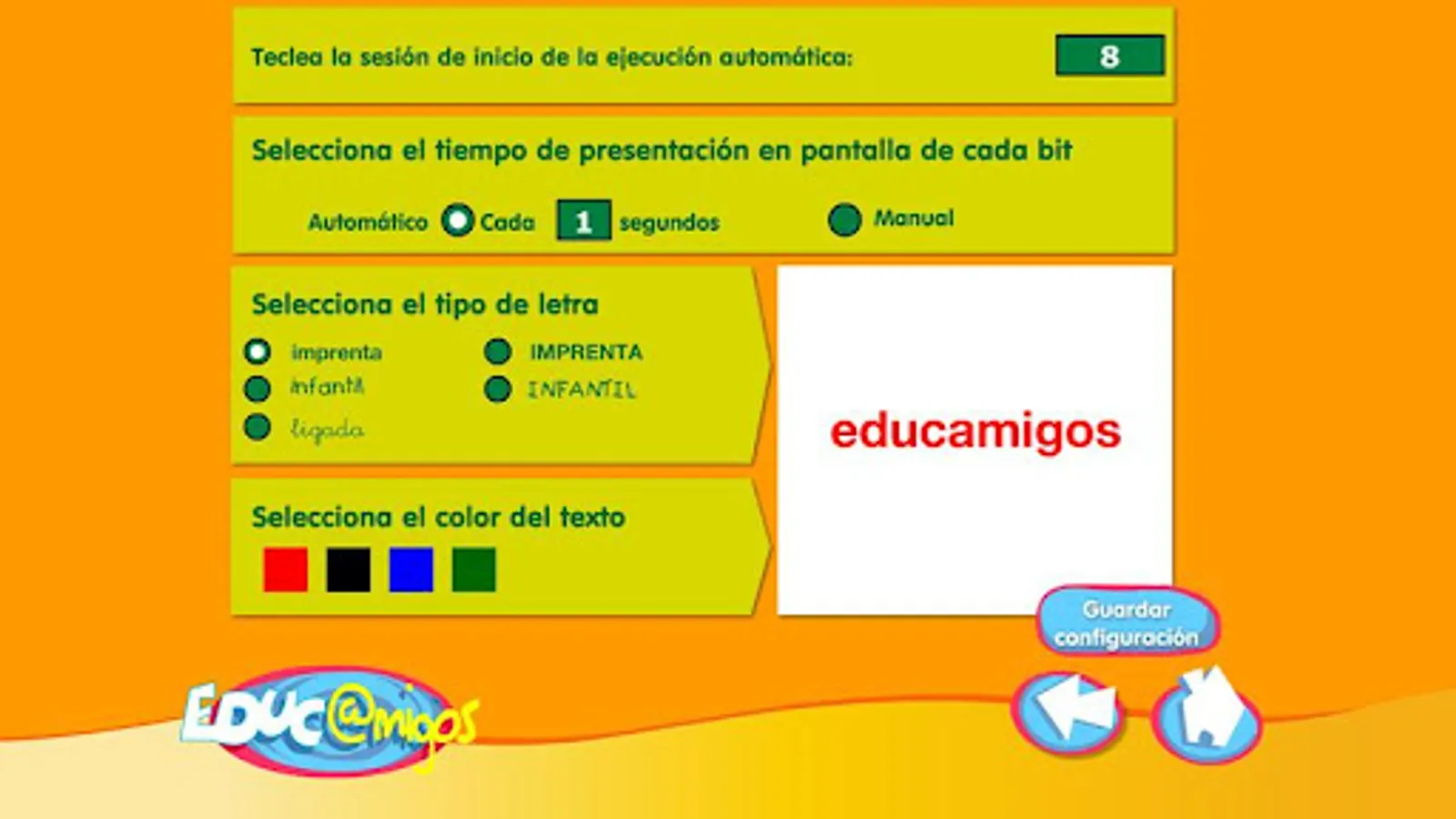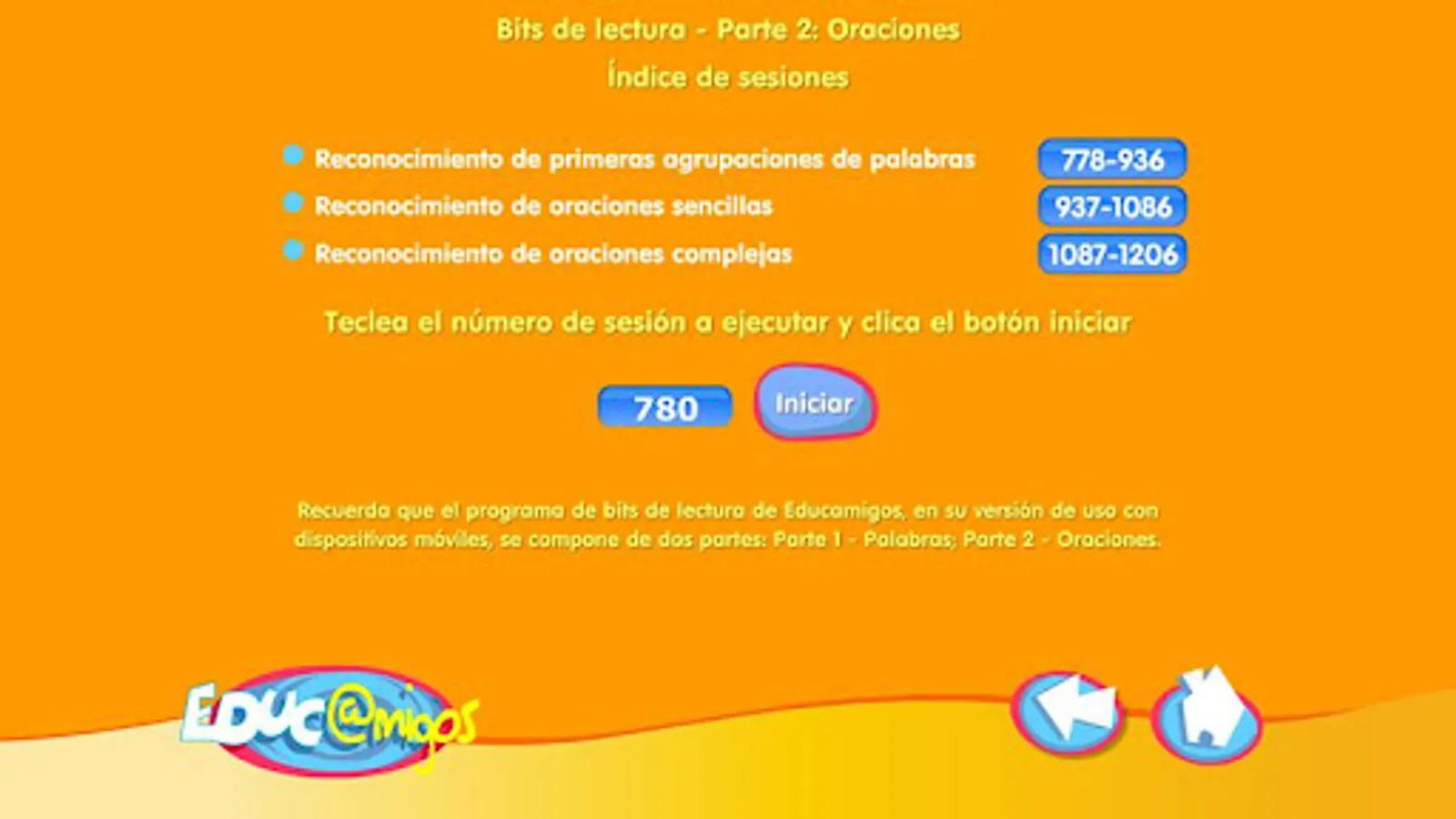 This app sessions with bits of sentences Educamigos contains 429 stimulation sessions, which helps children recognize sentences.