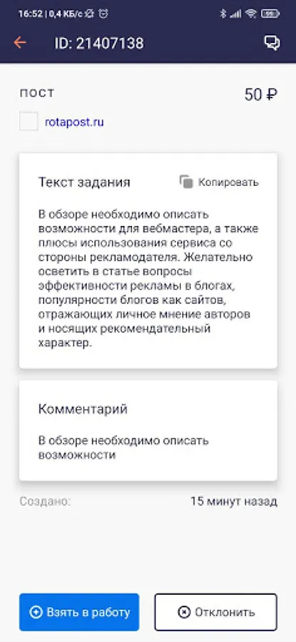 For advertisers application allows you to manage applications in active advertising campaigns, to correspond with the performers control the movement of funds on multiple accounts. For the owner of the blog application will provide an opportunity to accept and decline offers from advertisers to receive information about the modifications of the tasks.