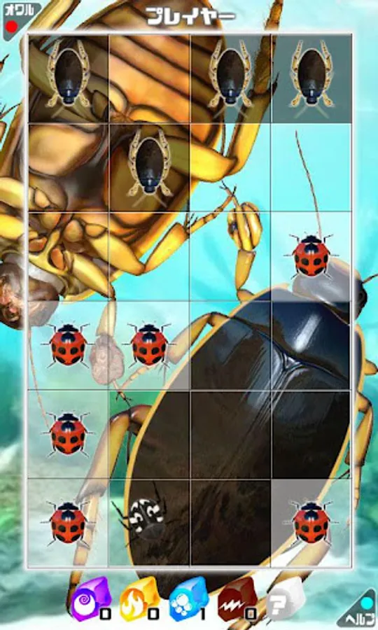 There are several gimmicks on the stage, and the game has depth. Item Summons Stones that aim for a one-shot reversal, and some insects that appear to be playing will appear! ? You can play for a long time without getting bored than regular Othello. You can also use the winning insects in a 2P match, so let's match your favorite insects and try your arms with your friends!