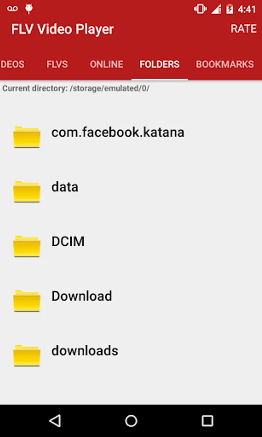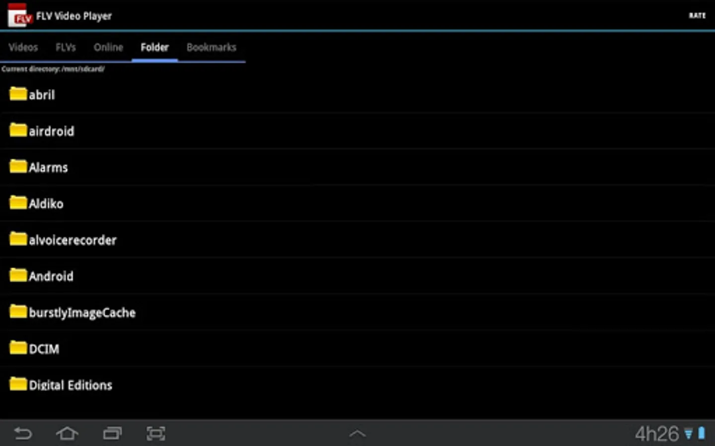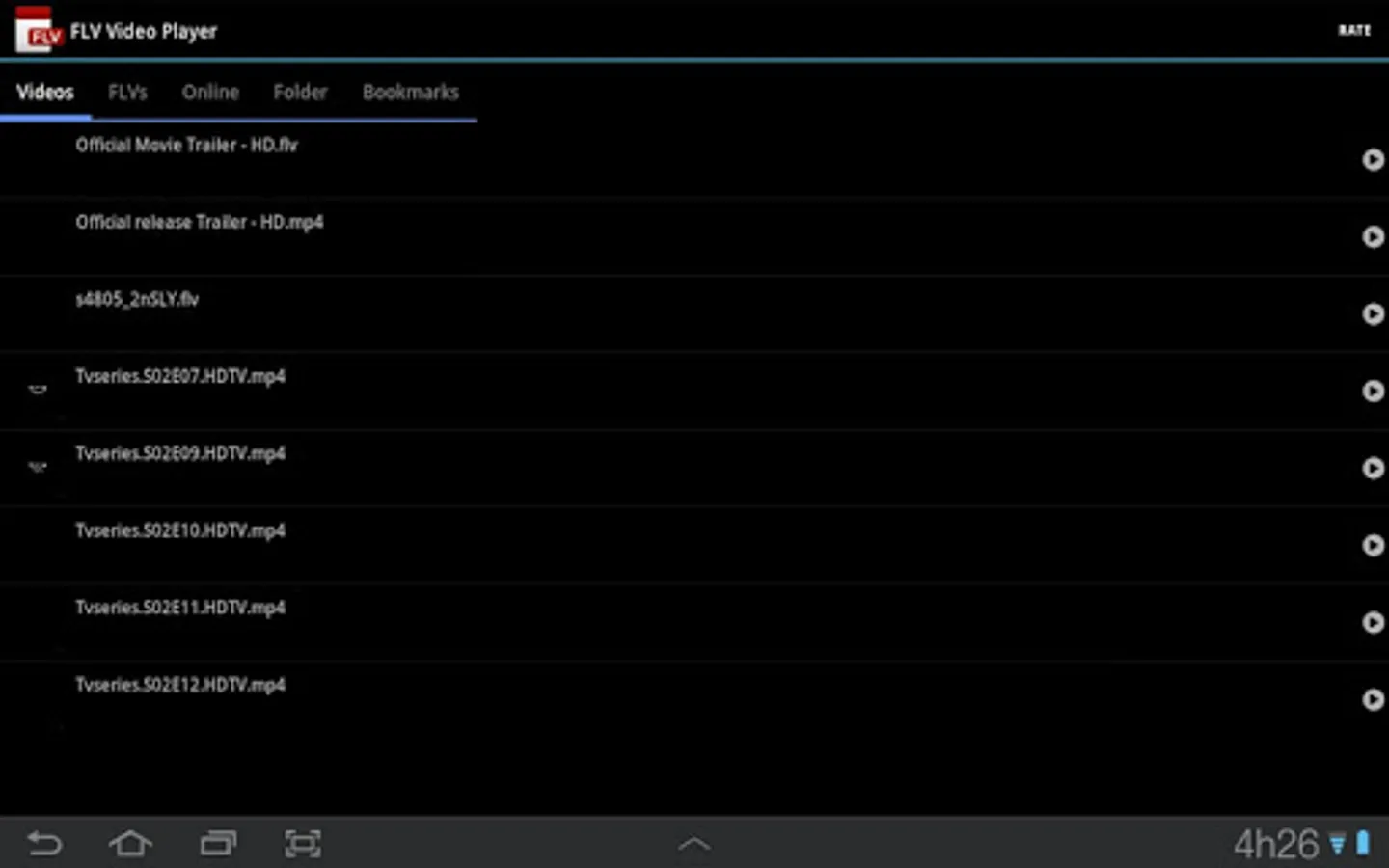 4) Open the flv file from the "Videos" tab or Navigate to the video file you want to watch in the "Folders" tab.