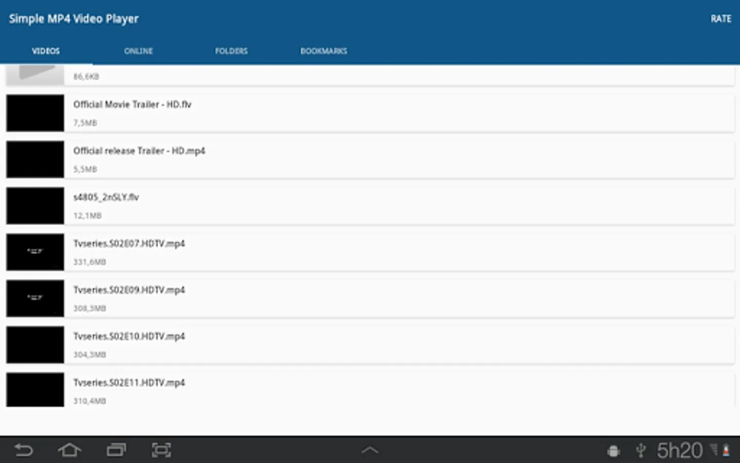 Play your favorites videos, movies and tv shows (mp4, flv, avi, mkv and others) from your SD card with this simple video player.