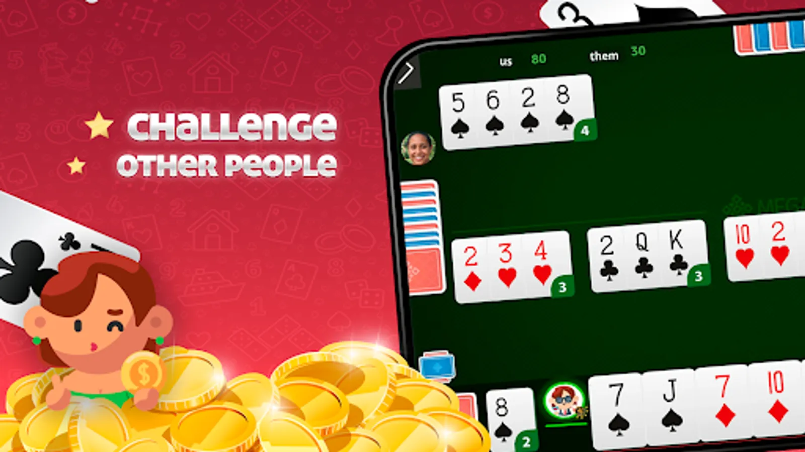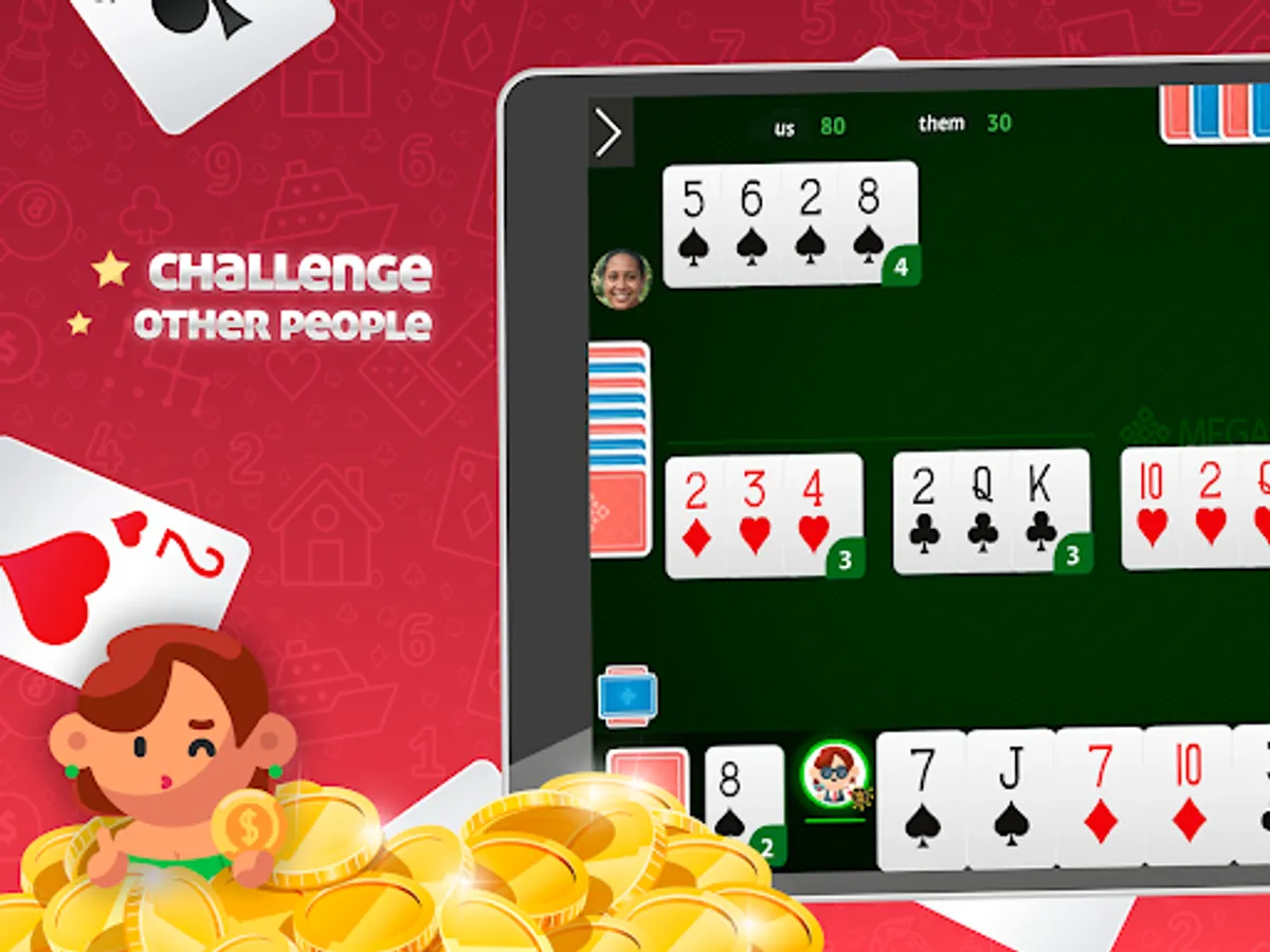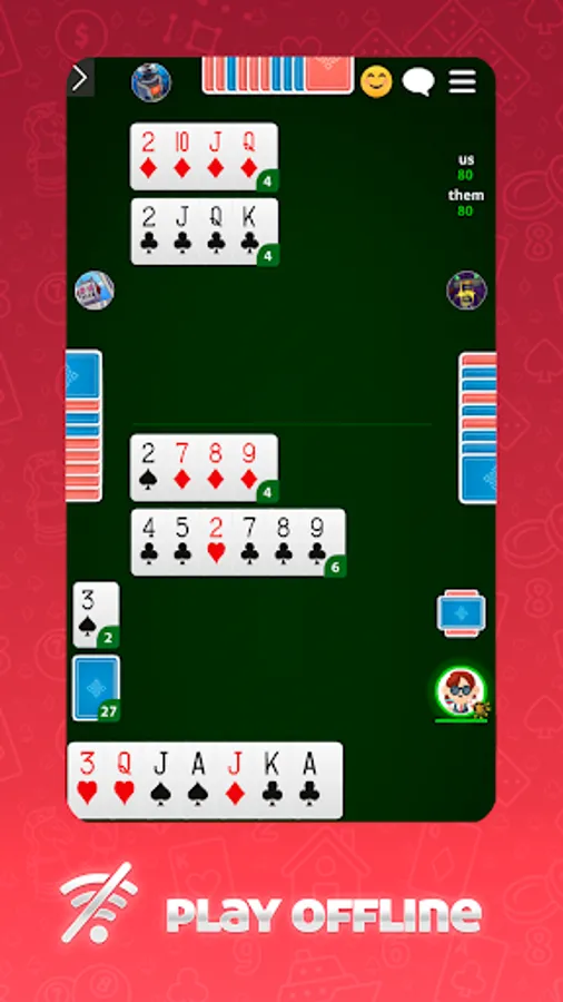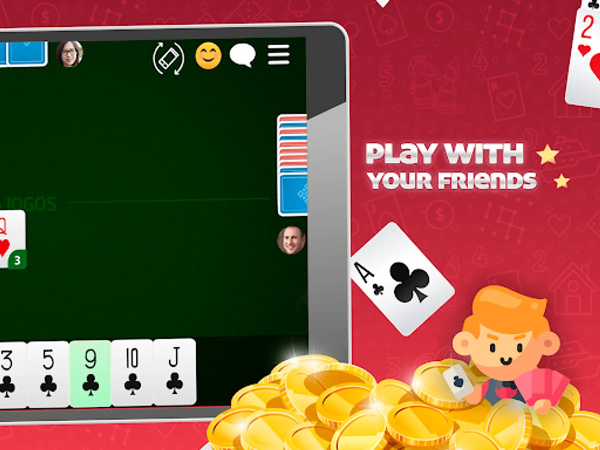 • Play cards with real players or against robots