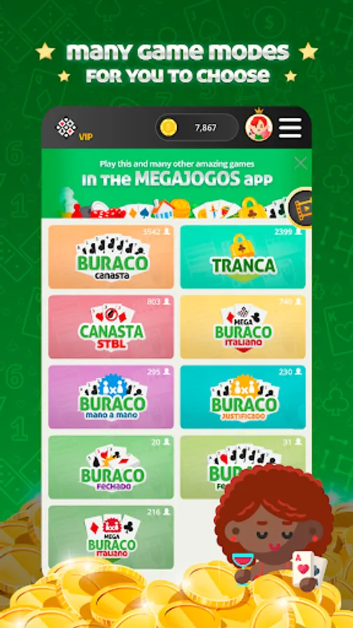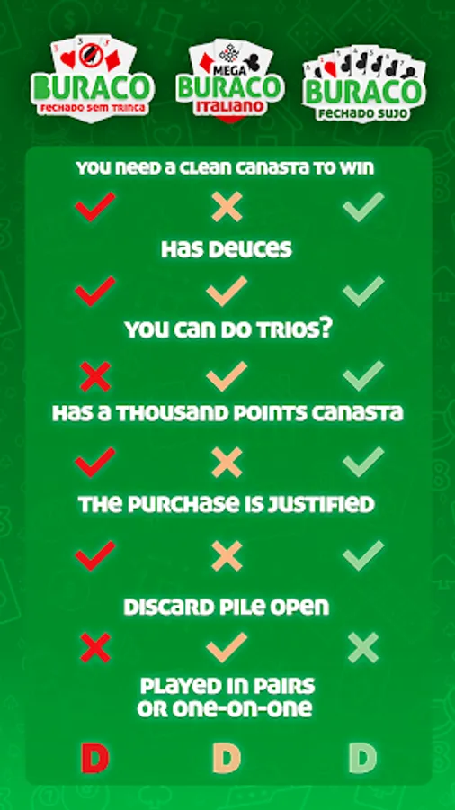 The most complete app with all types of Canasta, Buraco, Brazilian Tranca and others card games in one application.