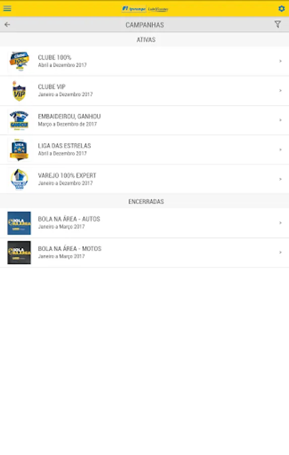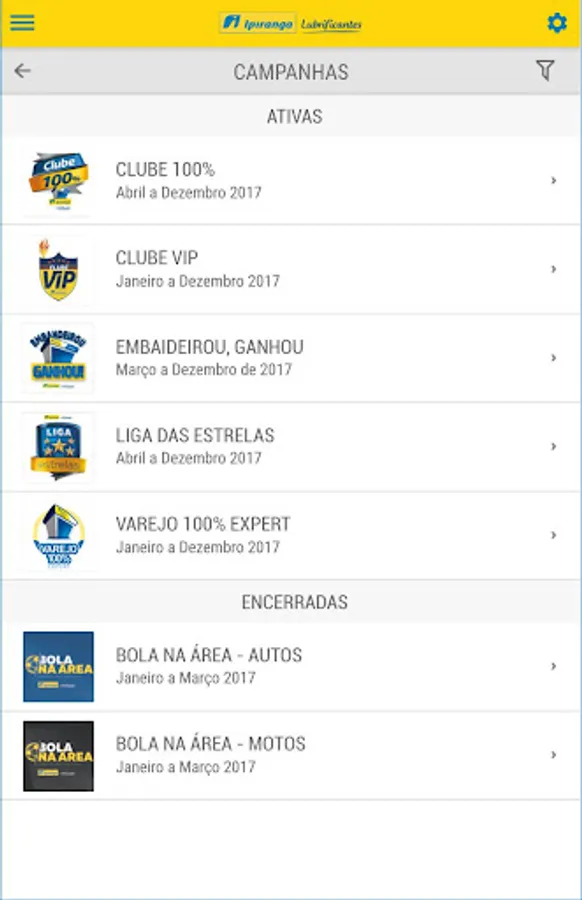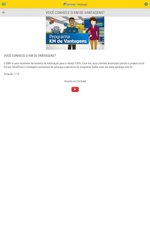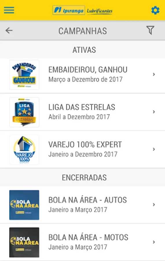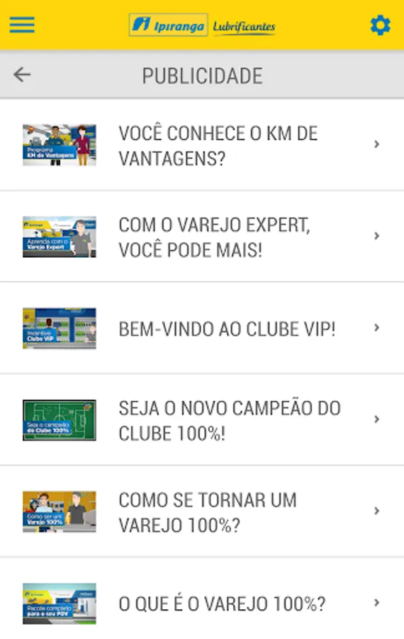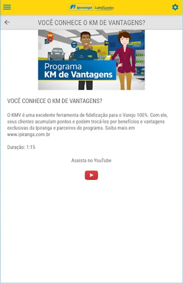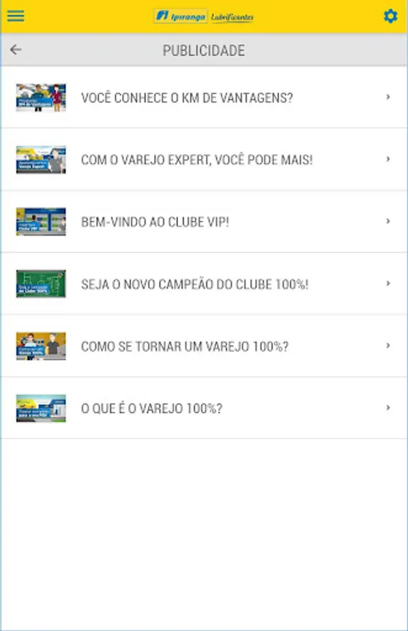 The application aims to provide the sales teams of partners Lubricants Ipiranga quarterly campaigns, in order to assist them in the sales pitch, including short films. It is a base of information for all campaigns for vendors and retails 100%.