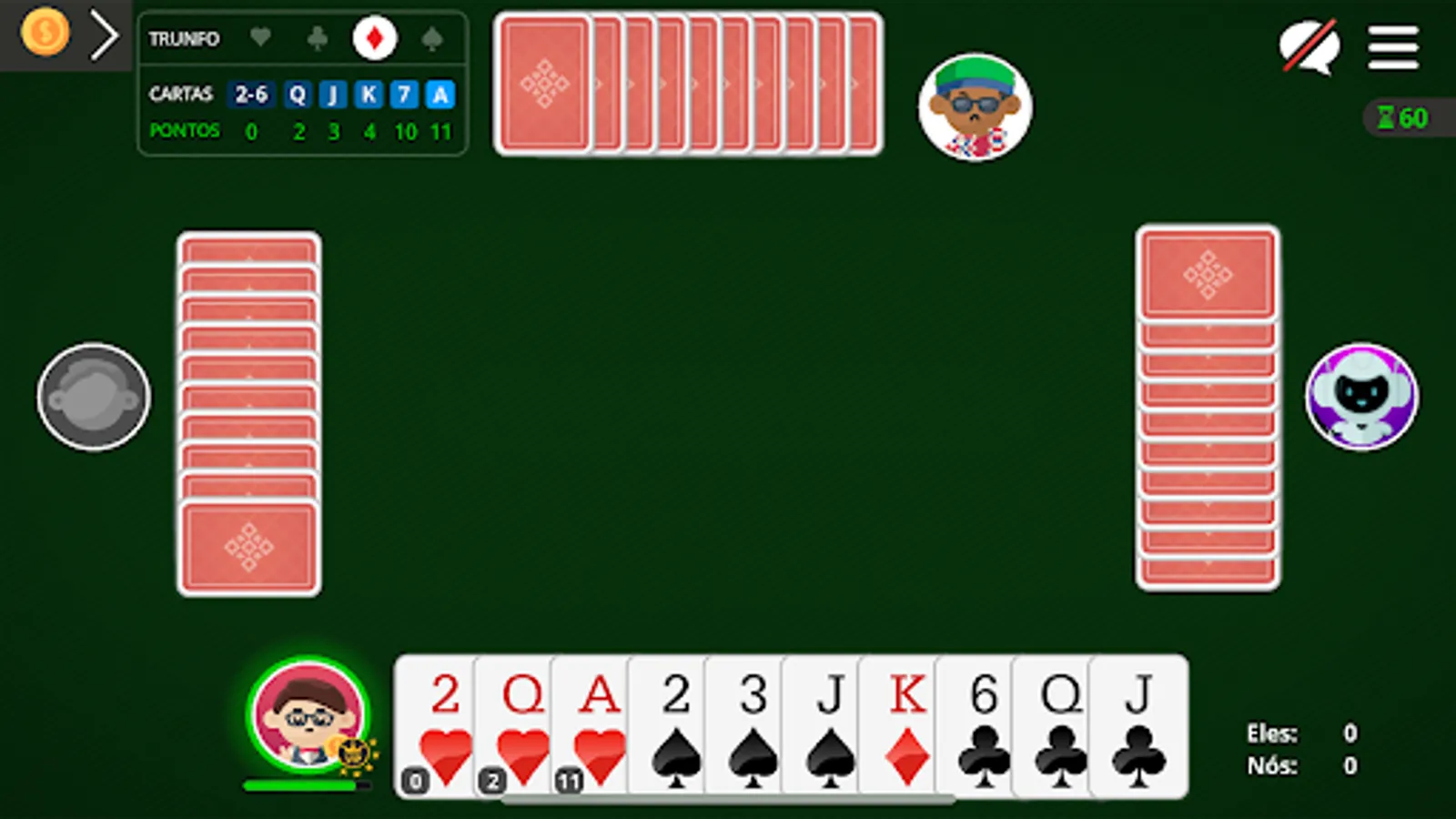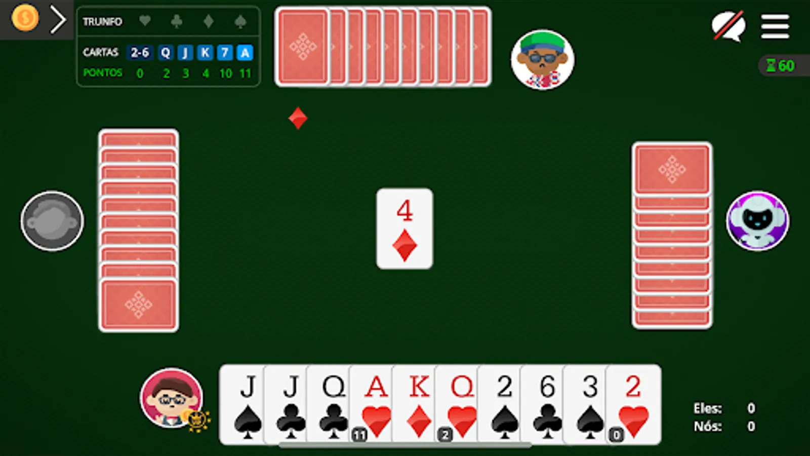 ● Play your Sueca game with your friends and family, or with our team of robots