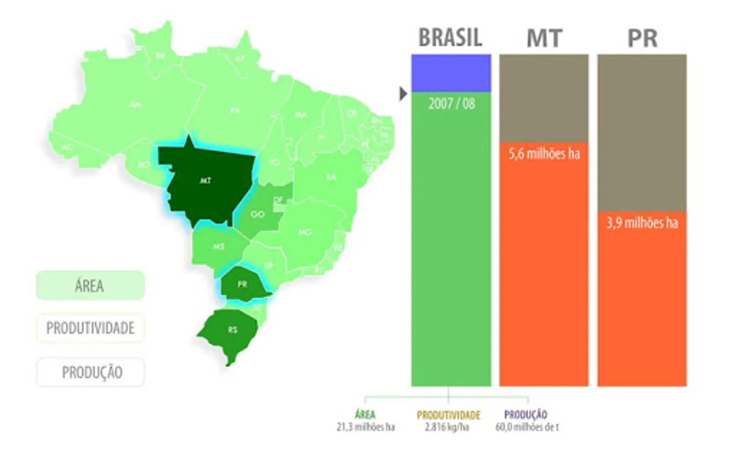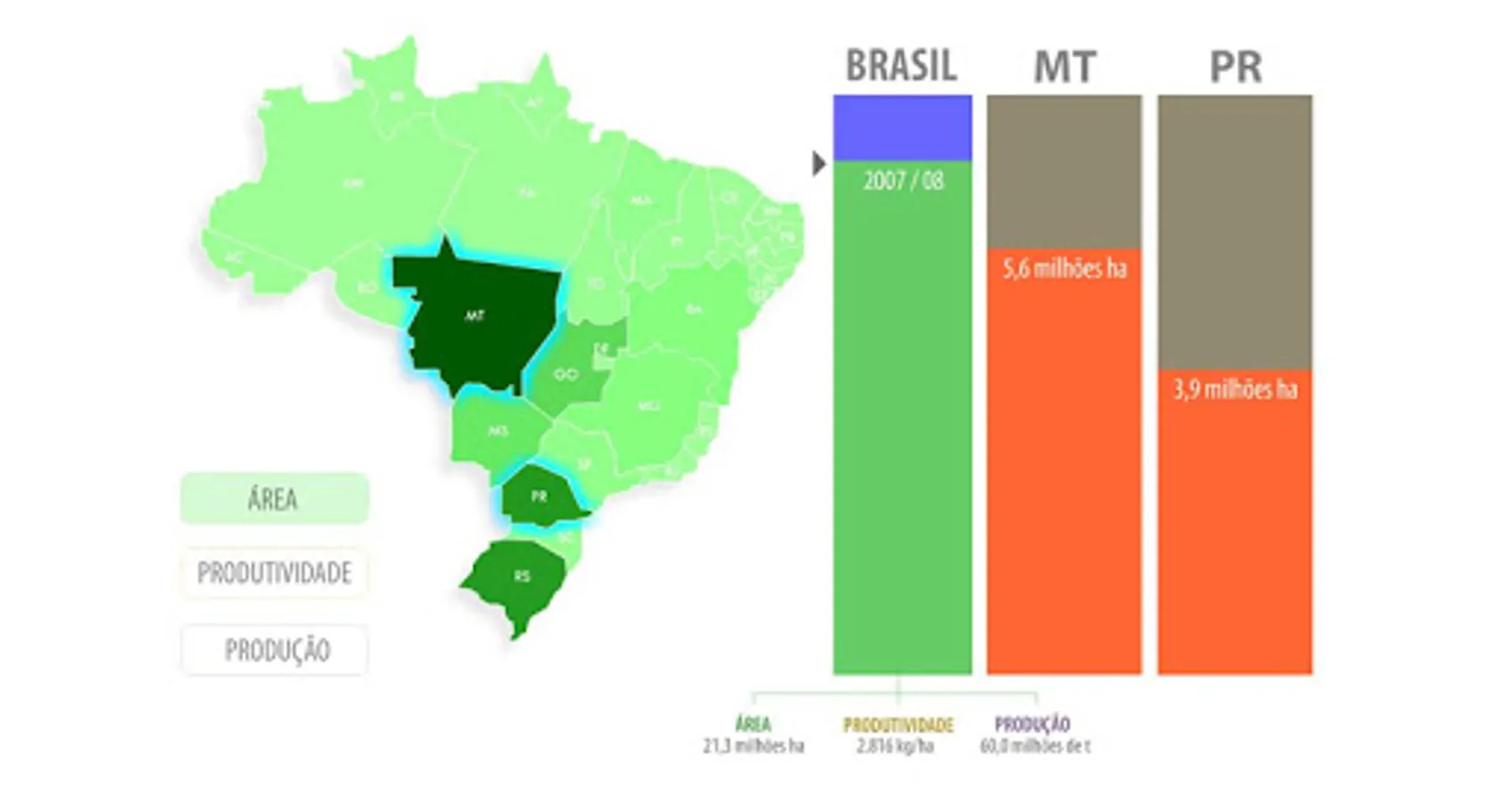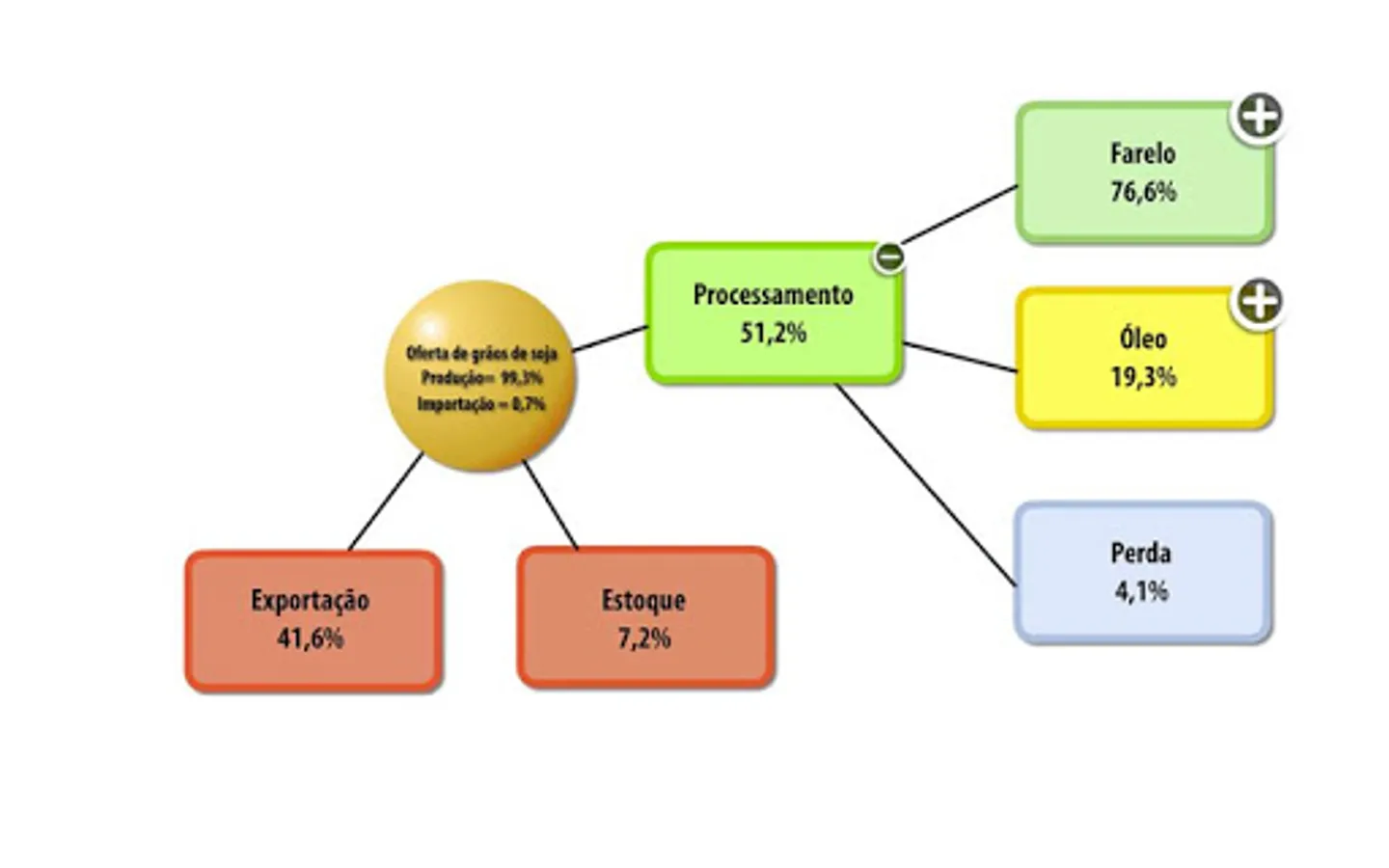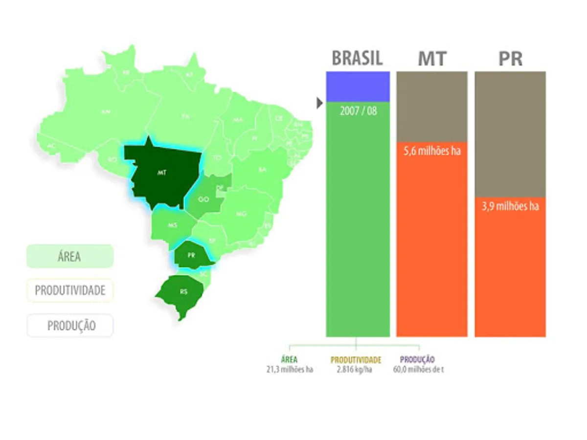 Soybeans in numbers is an initiative of Embrapa to make data more accessible cultural and educational soybeans. Were developed from data available from various institutions, whose credits are featured on the side of each graph. The information may be used freely, provided that the claims of the cited institutions generating the data and the adaptation made by Embrapa Soja. To cite properly, please "Data: cite the credit side of the chart / adapted by Embrapa Soja".