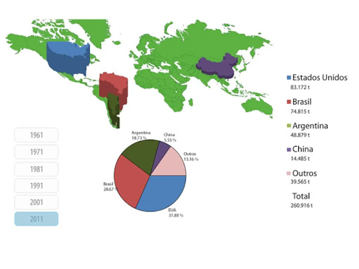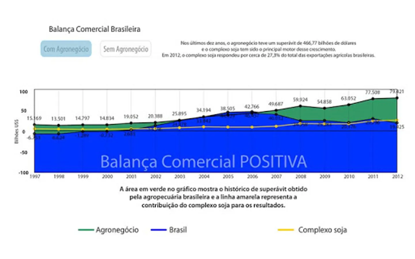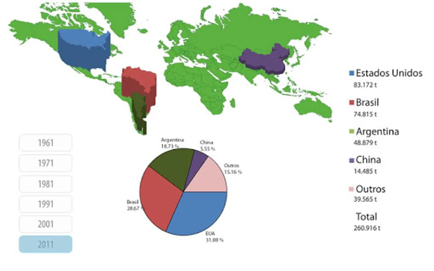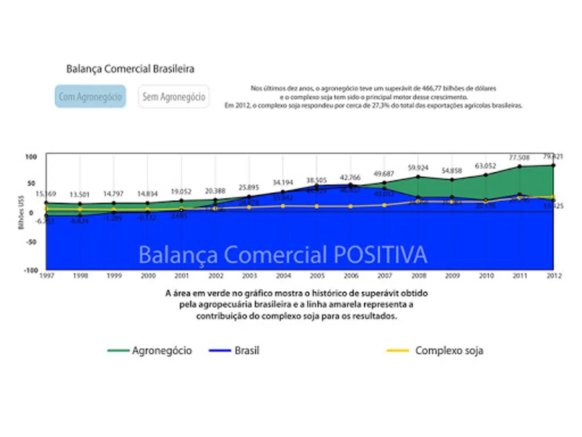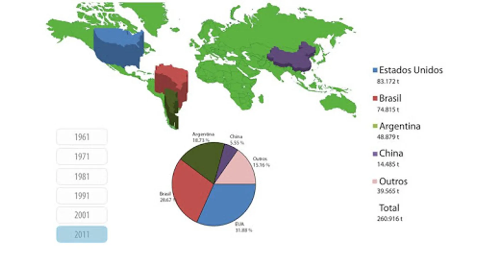 Soybeans in numbers is an initiative of Embrapa to make data more accessible cultural and educational soybeans. Were developed from data available from various institutions, whose credits are featured on the side of each graph. The information may be used freely, provided that the claims of the cited institutions generating the data and the adaptation made by Embrapa Soja. To cite properly, please "Data: cite the credit side of the chart / adapted by Embrapa Soja".