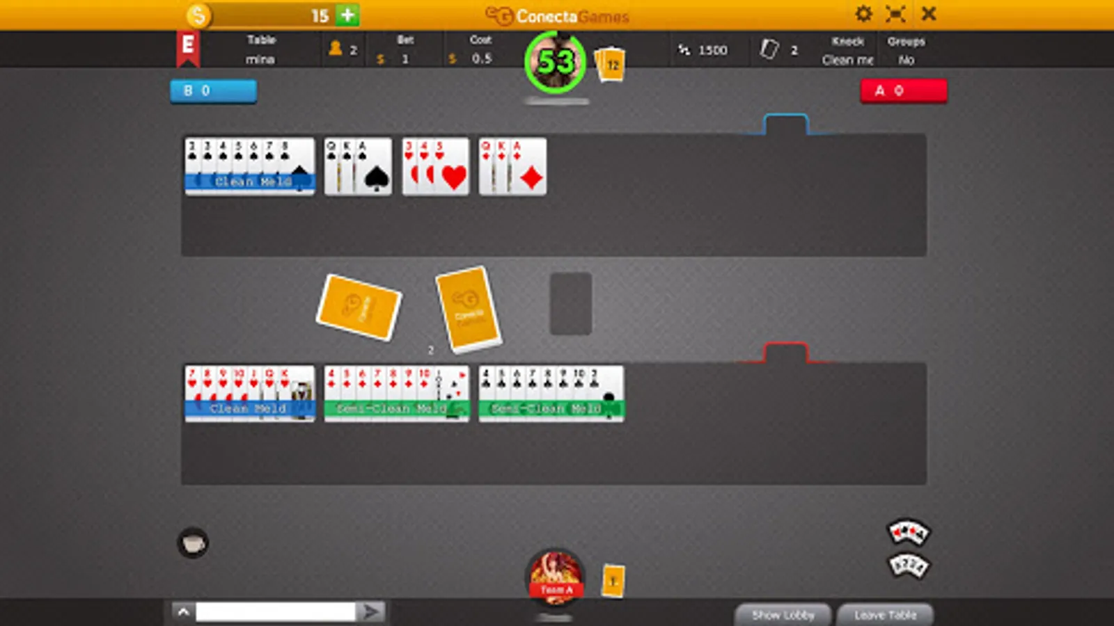 Meld cards in sets and sequences. You can make clean (no jokers or twos', both are wild cards) and dirty (with a joker known as "jolly" in Italian; or a wild card, which is a 2, known as "pinelle") Burracos by melding at least seven cards. Semi-clean ("semipulito") Burracos are also allowed, consisting of eight cards or more, containing a sequence of seven consecutive natural cards and a wild card or at least a set of seven cards with a wild card. But remember, a clean Burraco is worth more points than a dirty one! Use your "pozzetto" if you don't want to lose points! The player that goes out gets more points!