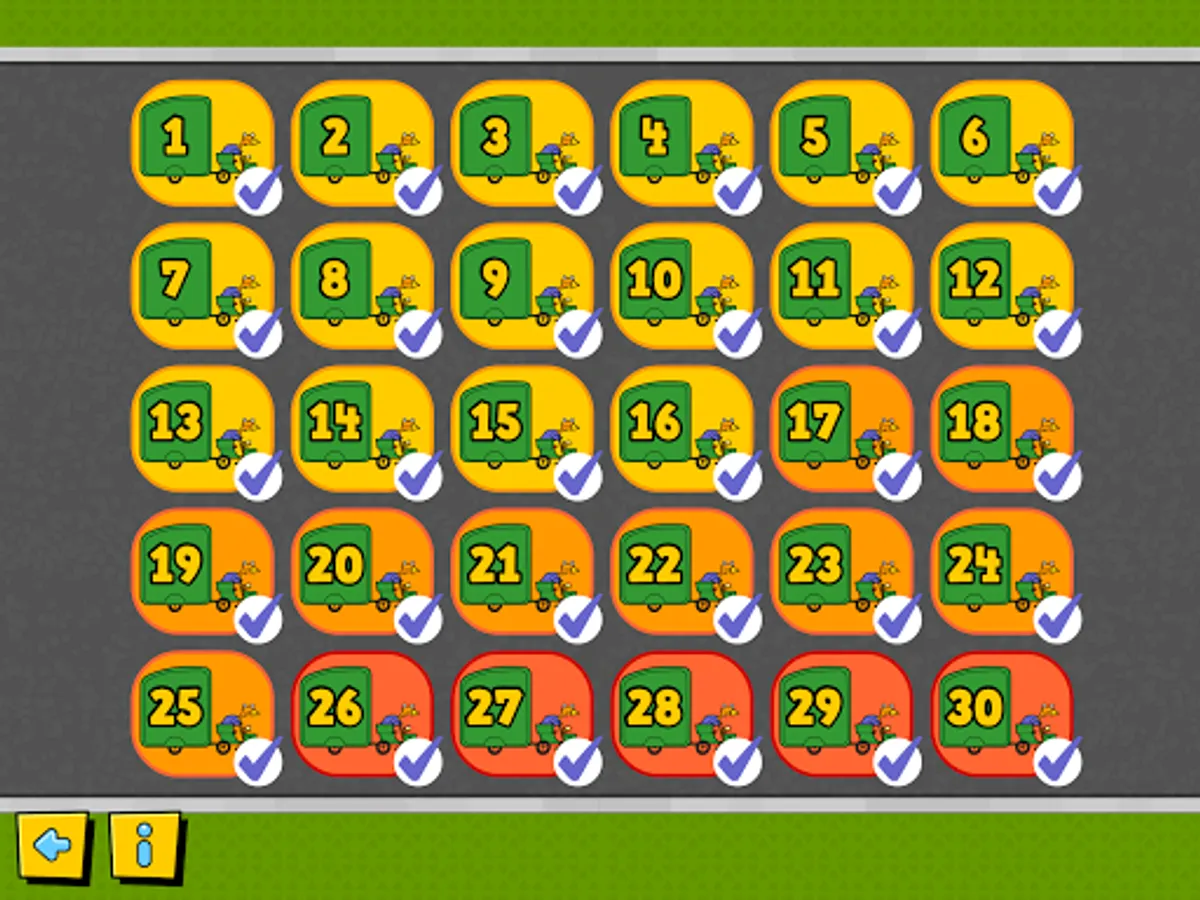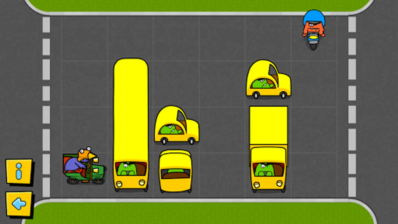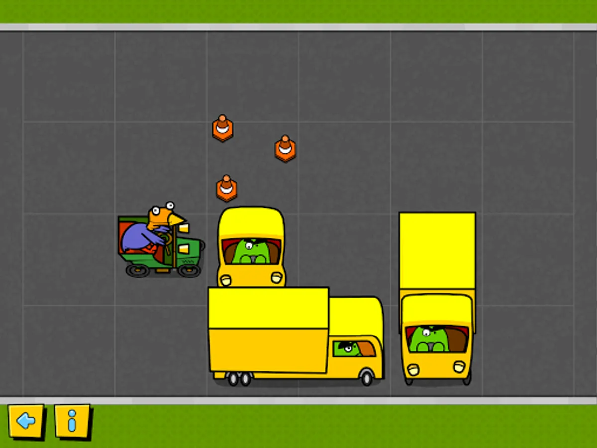 The chicken is trying to get home! Drag the cars, trucks and buses out of the way so the chicken can drive along the road. In the later levels watch out for the monster trying to eat the chicken! Move the vehicles to block the monster in before the chicken drives past. Great to introduce young children to problem solving and visualising positions, directions and movements.