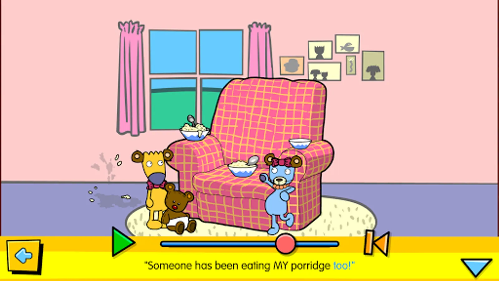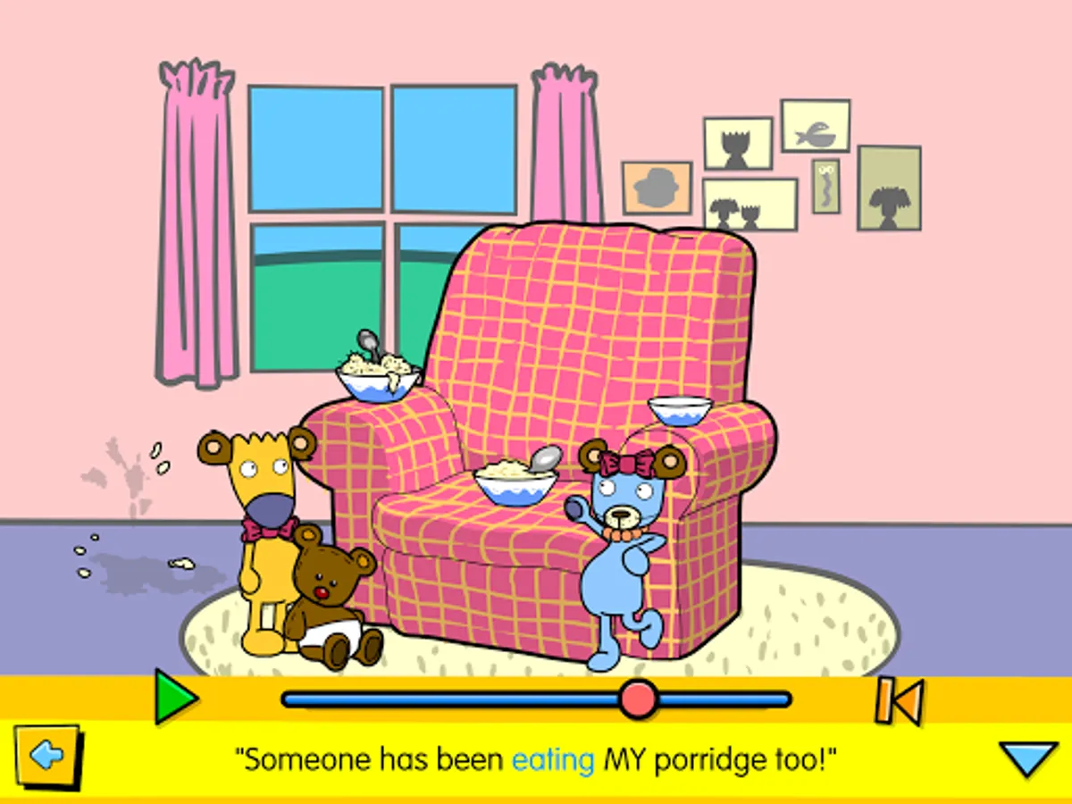 Dog and Cat love dressing up! Watch Dog and Cat dress up and perform Goldilocks and the Three Bears - all from the comfort of their own living room. Use the controls to watch the story. Great to develop imagination in young children and encourage them to recreate and act out a story.