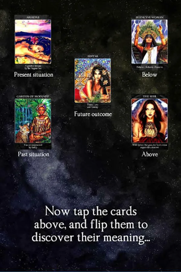- 3 types of readings (1, 3 or 5 cards)