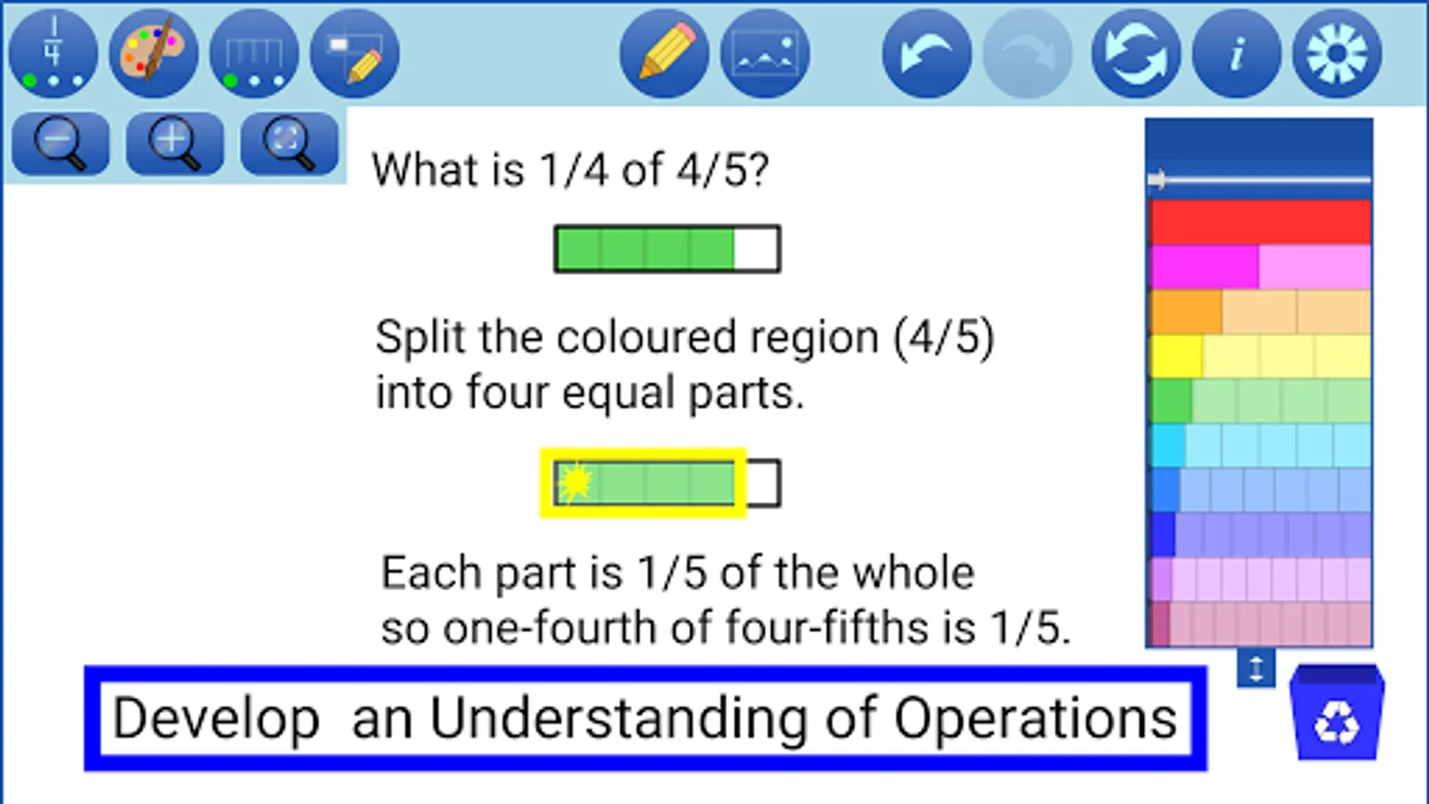 ● Reposition the fraction tower by dragging using the dark blue area at the top and use the double-arrow button to change its height