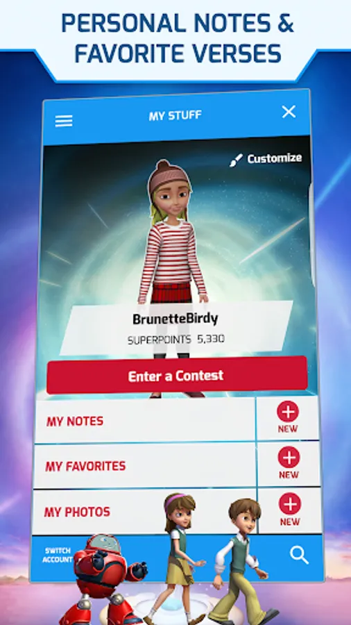 • Take Daily Quests – game challenges that feature an encouraging verse of the day