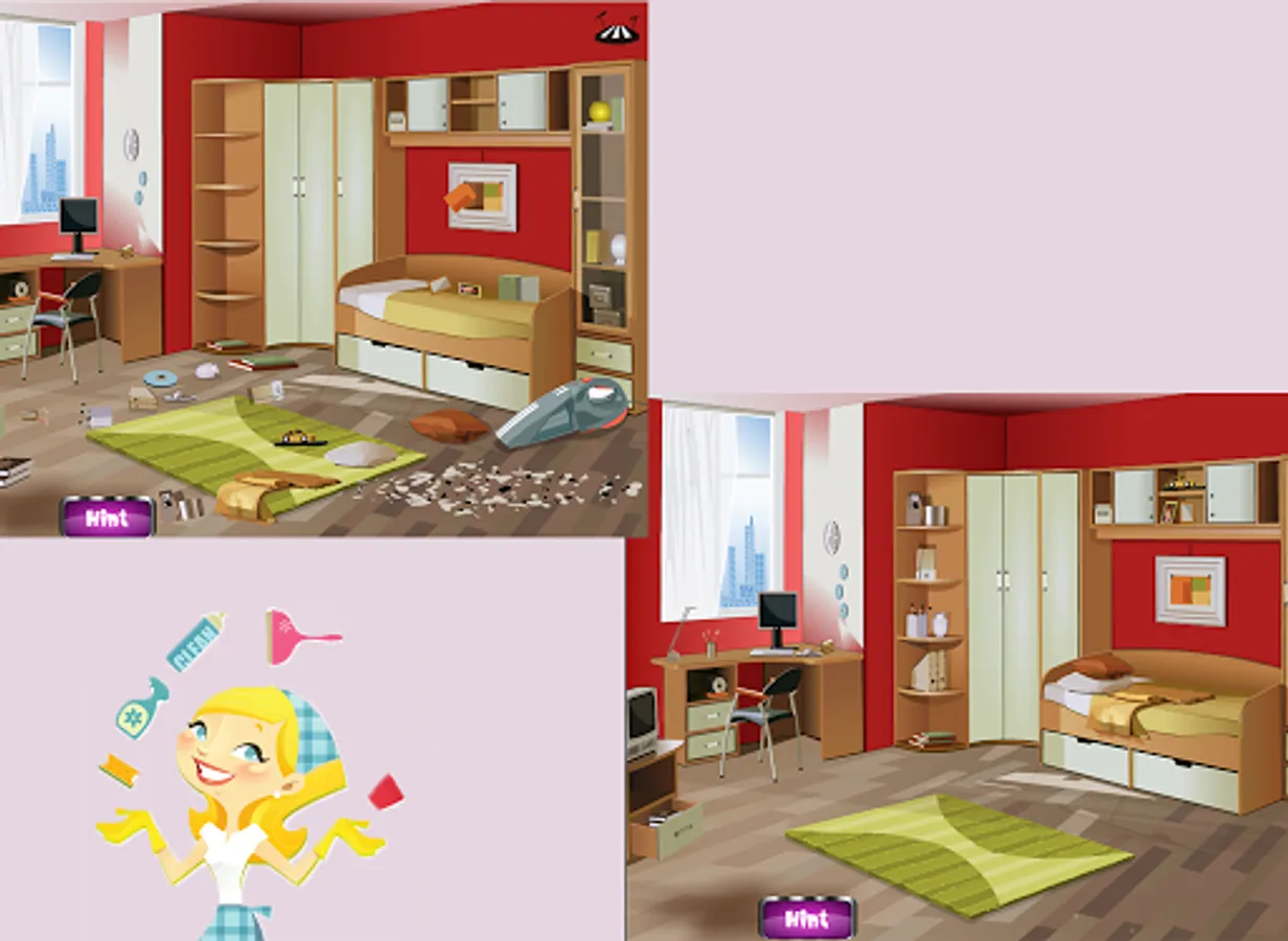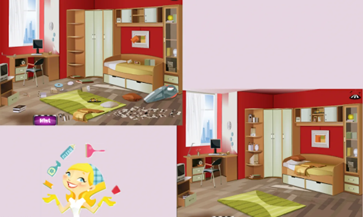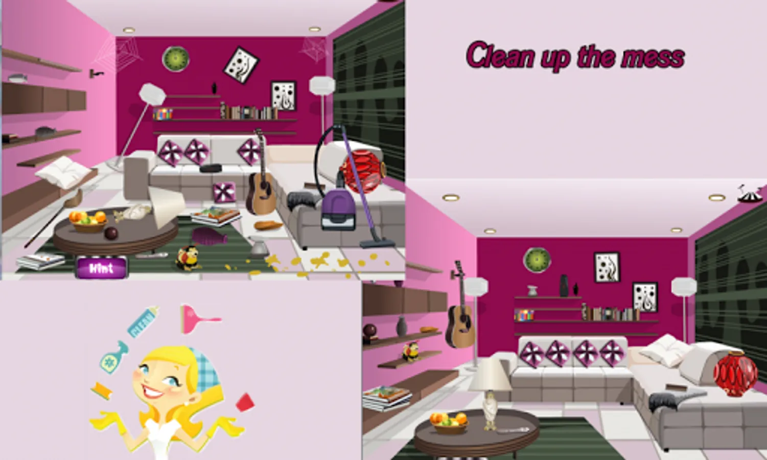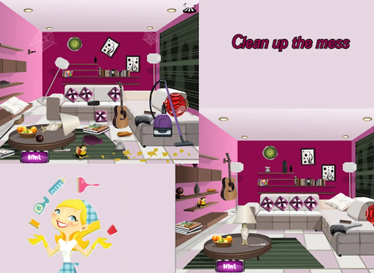 Hallo girls Charmy has a big problem, last night so had some friends over to celebrate her sixteen birthday. The problem is her parents are out of town, they are on a shopping trip in Paris. But today they are coming back home! And now Charmy got some time left to clean up everything in the house, itβs a big house and all rooms are a real big mess. Since the house is extremely messy, she wonβt be able to complete the task on her own, even if she would work for the entire day. So can you give her the extra helping hand so she can easily finish her task in less tim!