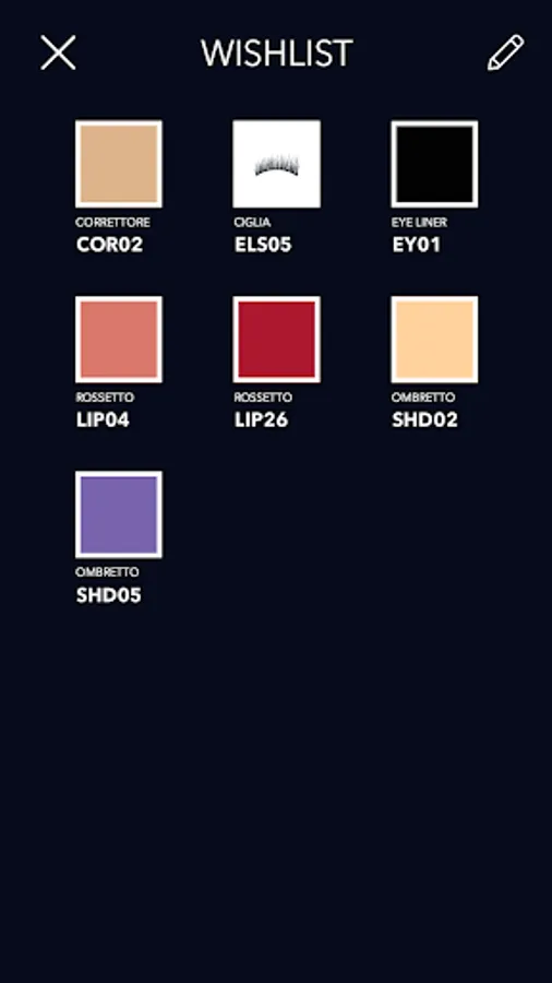You can try all our lipsticks, eye shadows, concealers, eye liner and magnetic eyelashes! You can also add the products you love most in the Wishlist to create your own list of favorite products.