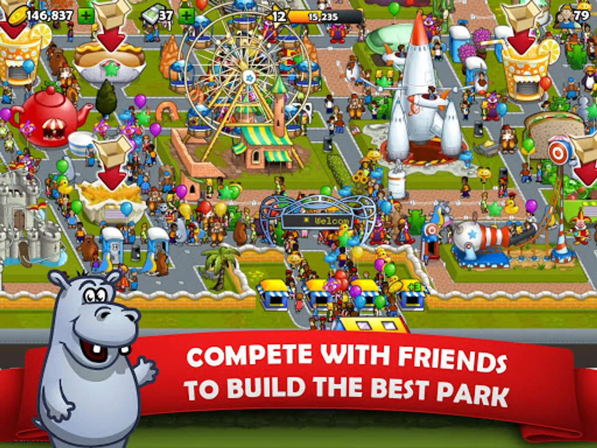 * Visit your friends' parks to see how they are doing. Help or hinder them!