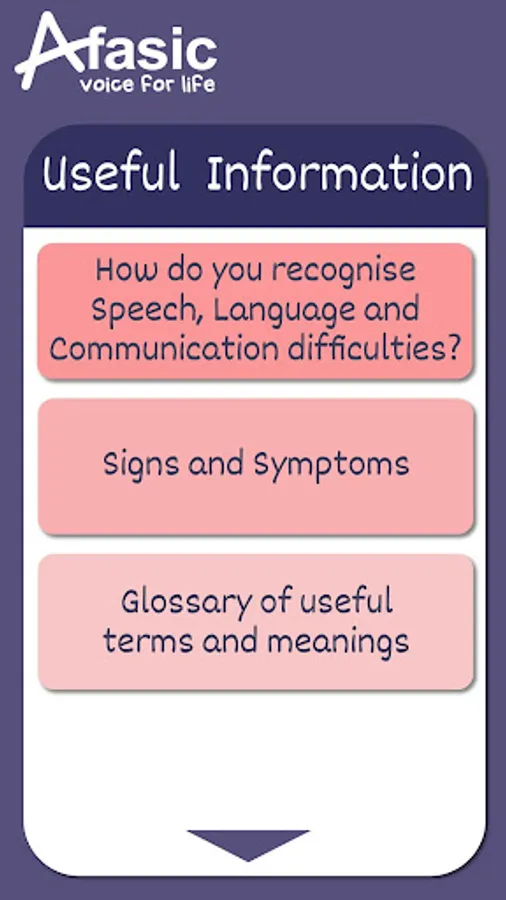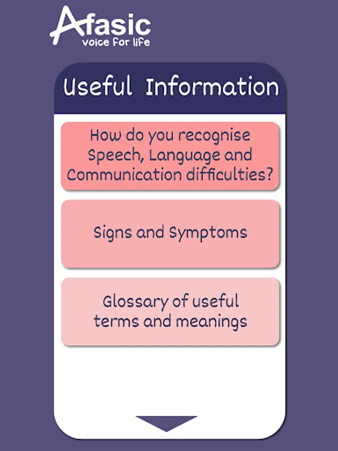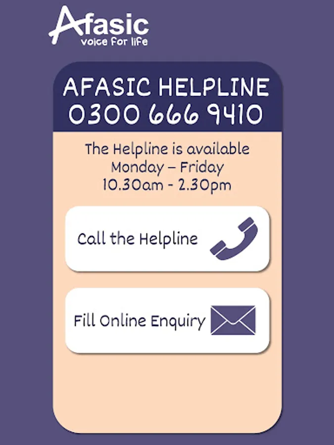 The Afasic App will enable parents to quickly access essential information and practical guidance, it will store key contact details, maintain a diary/journal and provide links to other relevant organisations.