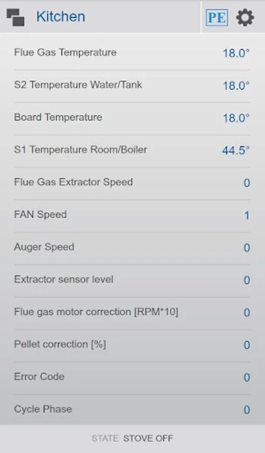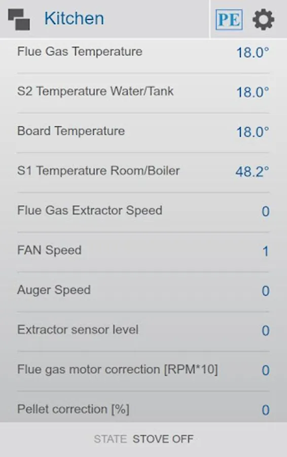 Having real-time access to various operating parameters, such as flue gas and room temperature (in the case of the stove), water temperature (in the case of the boiler), speed of the flue gas, room fan and auger, etc.