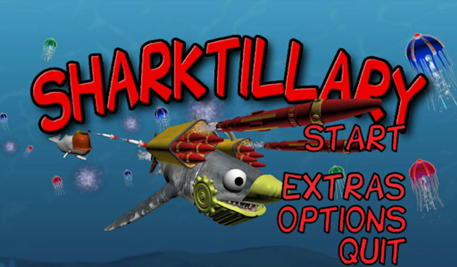 “Sharktillary” is a Shmup boiled down to its simplest components. No crazy gimmicks to worry about, no complicated controls… Just you and your reflexes against a horde of enemies and 20 levels of underwater chaos, an all original soundtrack and a campy, over-the-top story modeled after some of the great action flick/buddy cop movies from the 80's.