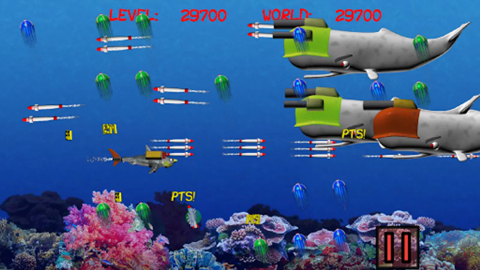 - Weave your shark in and out of the way of enemies and missiles reminiscent of arcade "bullet hell" style shooters